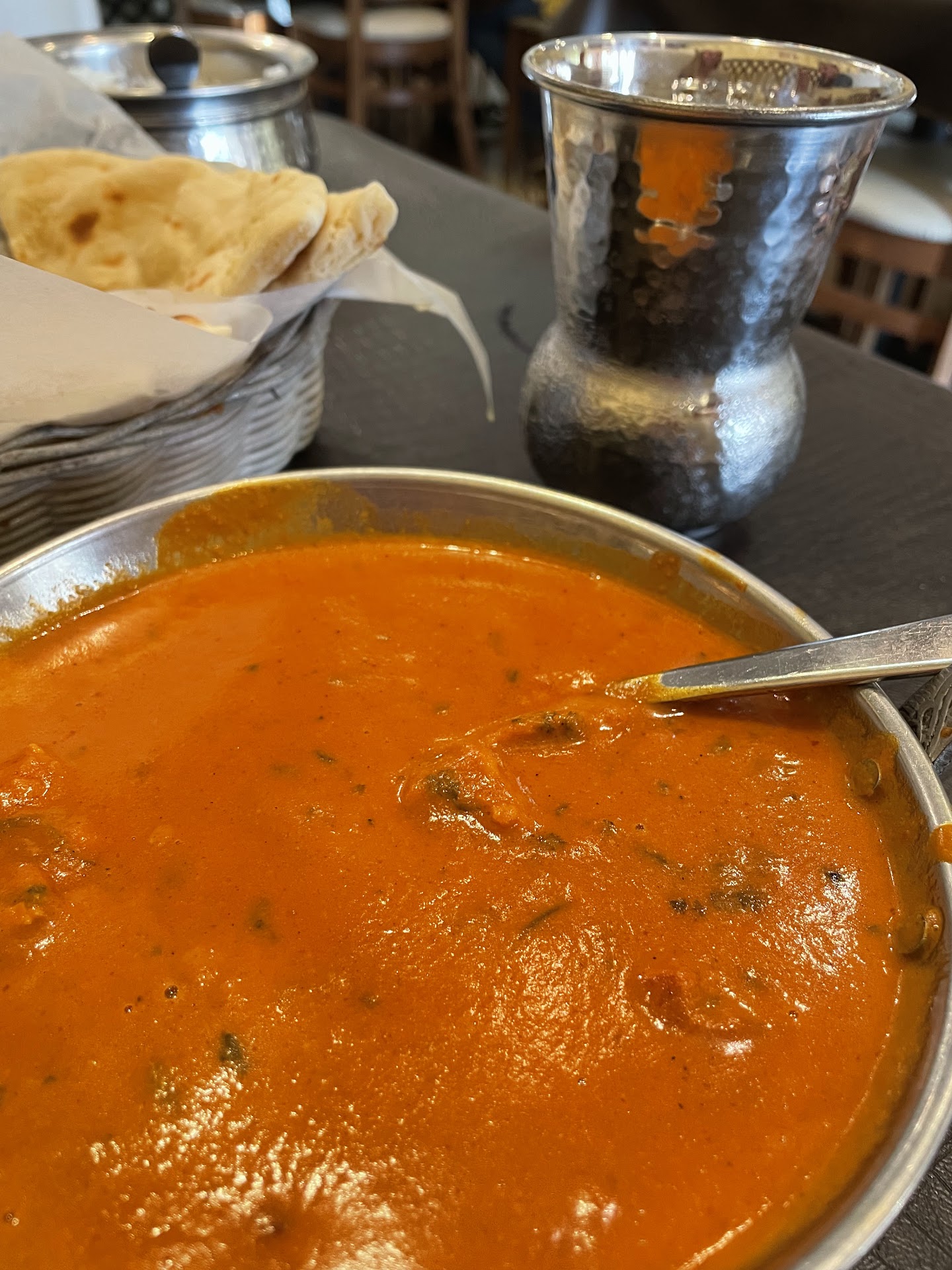 Our Naan basket included some "bullet" naan with hot pepper sprinkles - something I'd not encountered before. I didn't really notice the spice but my son-in-law found it a bit much. I thought we were getting some garlic naan but didn't get any myself. But the naan went quickly.