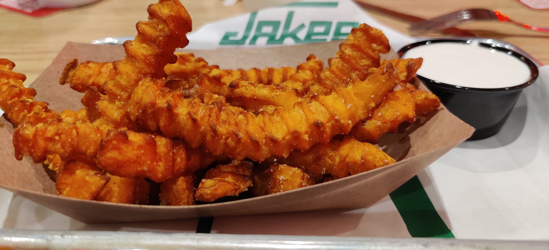I used to LOVE Jakes. My last visit on 4/20, at the Flower Mound location sorely hurt their reputation. I was on my way to the hospital to deliver my baby. Had to be there at 8 pm. My husband & I stopped here for dinner, about 6:20, because it was close, and one of My fav places. 1- It took about 5 min to even be greeted / sat. 2- We were taken to the last booth, next to the kitchen. Again, a minimum of another 5 min, waiting to get a server / drink order taken. (Our server wound up being the same guy who sat us). 3- We ordered 2 iced teas, and an order of fried green beans. Finished the appetizer, & our drinks were empty before he ever came back to get our dinner order / check on refills. 4- There restaurant was not even full, so we were confused as to the wait / lack of server attention. 5- We ordered Chk tenders, and a hot rodeo, (the old hot cowboy) w/ tots. 6- QUITE LITERALLY, about 40 min AFTER we placed our dinner order, I stopped our waiter to ask him if he knew how much longer it would take to get our order, because I had to go to the hospital. By now, it's about 7:30. He came back and said "I asked the chef, and he said it would be another 20-25 min."... SERIOUSLY? This is AFTER we ordered 40+ min ago, a simple 2 entrées? We immediately told him we couldn't wait any longer, please just give us our check. We had been there over an hour now. He apologized, saying they were short staffed, and only had one chef. Told us we could go, they would take care of the check. (Not even close to being making things right.) I know for a fact there was at least 2 people behind the line I saw myself. There was a food runner / mgr. / maybe another server, I'm not sure. I'm in the restaurant business myself. I get times have changed. But there was ZERO EXCUSE for this experience. At not ANY point did the server, a manager, or anyone at all approach us, to let us know things were running behind, to expect an extra wait, etc. At least give your guests a heads up, you know? Again, there were people / other patrons there, but by no means was the place so packed, that it warranted an hour + wait for 2 entrées. Absolutely unacceptable. I have a hard time believing this is how Jake's mgmt would like their business...