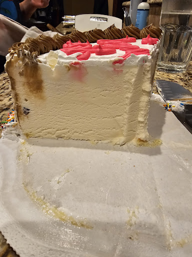 Read moreCustom made a cake and it was terrible. The pink icing they chose to use was so bad we had to scrape it off(we didn't choose pink). It was supposed to be cookie dough(4 small pieces in tbe ENTIRE cake) with vanilla cake(non existent) base and it had neither. Not a fun way to cut into your cake after blowing out your candles. We cut the entire cake looking for the cookie dough and cake layer(there was a tiny sliver of cake under about 2 pieces). $50 and a cake meant to feed 12 people, only 1 person ended up actually eating it. What a waste! Reached out to customer service via email and heard nothing back. Do yourself the favor and go down the road a mile to...