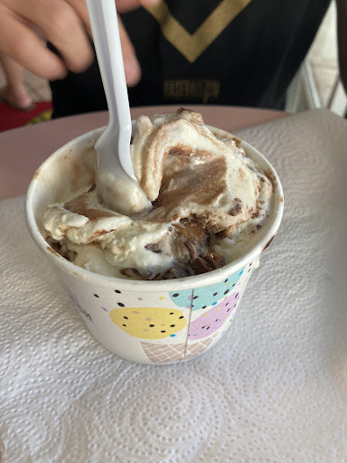 Then we asked if they had more sweet cream she told us no they were out. So we began ordering a different flavor (coconut) only for the other girl to bring out sweet cream 🙄!! So I said, I would rather the sweet cream! She slammed the ice cream scoopers down! I said well we asked for sweet cream first, you are the one who said you were out. Her response to that was we were. 🤔 Um! Well clearly that’s not true bc there is an entire pan of it and that’s the flavor we would like! So she mixes the flavors together yuck 🤮! I spent $25 to just throw it in the trash. Do yourself a favor go down to Baskin Robbins a half mile down the road. The ice cream was much better!