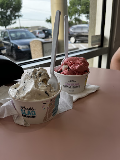 Read moreService could have been better. First off, the lights were off. Went there after church. My wife asked me to pick up some marble slab up for her on my way home. I was with my nephew, stopped in, there was a family of four in front of us. The employee took care of them then told us she had to go in the back to take care of the ice cream before tending to us, I told her that was fine and to take her time. When she returned, my nephew ordered the raspberry sorbet, she took care of his order. Then my turn. I ordered vanilla with chocolate chip and almonds for my wife and asked for the blue tub (looks like it's about a quart, but I think it's a little less) nonetheless, I asked for a blue tub and she immediately told that I would have to call that order in and it would take at least three hours to pick it up. I'm thinking WHAT!! I didn't want to be rude, I didn't think my order was that over the top. I looked behind me and there was one man in line behind me and another lady walked in. I asked why 3 hours and did not get a straight answer until she finally said the ice cream was cold and hard to pack especially when other people are waiting on line then laughed. I conceded to the next size down, paid for the order then left. I have never been in Marble Slab and have to say that was a bit disappointing. My nephew said that he and his aunt been to the other store in Little Elm and that the experience there was completely different not to mention the people seemed friendlier. In closing, I don't think I will be visiting the store again. Sorry, don't really want to slam the store too hard, but try and keep the customer experience in...