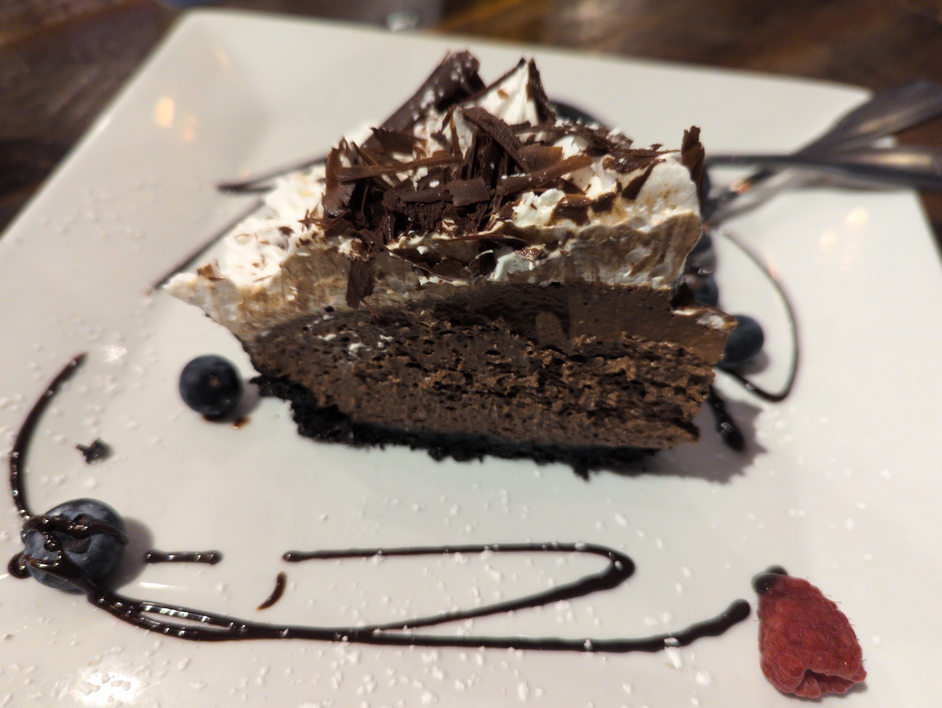 Read moreThe food was mediocre. Upon entering the restaurant was not asked where we would like to be seated so we were seated in the bar area. It was extremely loud, we would have preferred the other dining area with a much better atmosphere. My husband ordered the salmon and I ordered the special of steak and shrimp skewers. Both higher priced items on their menu. My husband's salmon was average and my steak and shrimp was less than average. I received 2 shrimp and a slice of strip steak. The shrimp were fine but 2 really for $29.99? The steak was burnt and I mean charred on the outside which spoiled the rare flavor on the outside. The steak was also tough and grisly. Again not worth $29.99. The asparagus on both dishes was over cooked. We finished dinner and our plates remained In front of us for several minutes until a wait person came by with a pitcher in one hand and asked if we were done, this was not our wait person. She proceeded to stack my husband's plate on top of mine and lift them with one hand precariously in front of me. Again not at all okay. I thought both plates were going to topple into my lap. The manager at one point hurried by to check on tables but literally when I shrugged my shoulders he made no attempt to ask what the problem was with our experience and hurried to the next table. On our way out he asked again and I told him not such a great experience and steak was tough. He said we'll let me check it out, this was a bit too late in my opinion. Not a great meal or service. Too bad for Flower Mound as we thought maybe we found a gem but we were sadly disappointed. We will not return - too much wrong with this...
