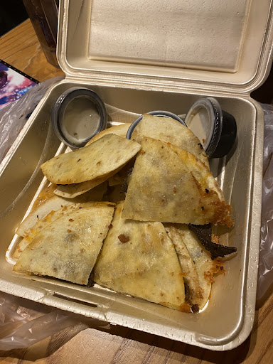 Brisket quesadilla 5/5: Top edge crispy and crunchy to perfection, brisket soft and squishy due to the shredded cheese, very great with sweet, savory, and Smokey sauce!