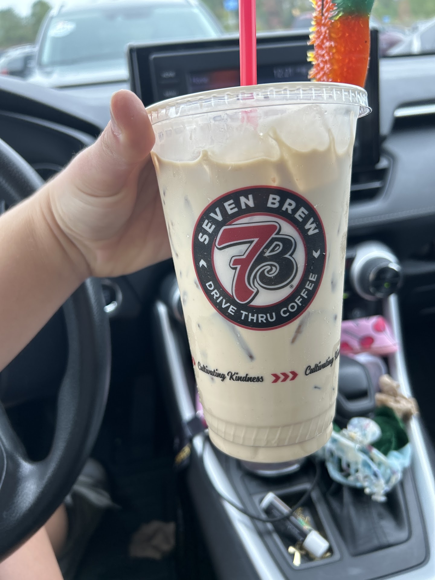 Read moreI tried this place out with my sister after seeing glowing recommendations from at least 3 of my Facebook friends, so my expectations were high. The experience I had was just okay. The fellow who served us was nice enough, and the other employees seemed to have upbeat attitudes and good camaraderie with each other, which is always good to see. The coffee was bitter and not very sweet in my opinion, and I ordered my drink at full sweetness. I have to agree with another reviewer here that 7 Brew is not very beginner friendly; we were glad to have viewed the menu online before visiting. It's a bit hard to exit the drive-thru when you've been served before the person ahead of you in line and they have cones blocking the only other exit. You actually have to wait for the person ahead of you to be served before you can leave with your drink; you're just stuck in line until they get served. That doesn't sound ideal in a scenario where I'm alone in my car, and the car ahead of me contains 4 people, all ordering a drink each, now does it? This would not be a factor if the cones blocking the other exit were removed. I am willing to give this place another try; maybe next time my coffee will be sweeter and the traffic cones...
