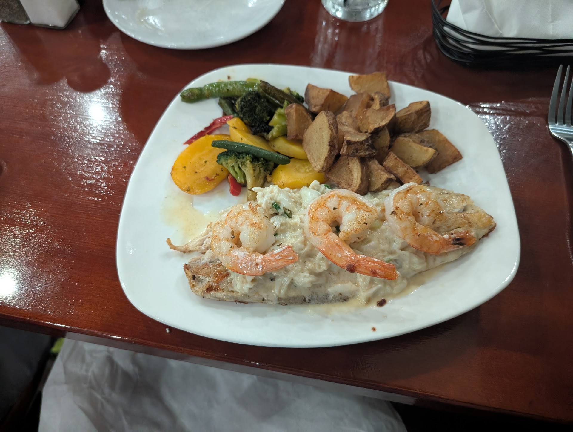 I had the seafood combo dinner. I had deep fried oysters and grilled scallops, mixed vegetables and potato slices. And a super small house salad with their comeback dressing. Oysters and scallops were on point, very, very good. Although quantity was lacking, only three scallops and if my memory serves me correctly, six oysters. But again, they were outstanding. Also the potatoes were great, should have gotten double potatoes and left the mixed vegetables alone, which I did on my plate. I'll know next time. Service was ok. Not bad, not fantastic. The comeback dressing was outstanding. Although it was one of the smallest house I have ever had. Meal also came with a small basket of bread for small slices which was very good but needed pats of butter, which I asked about and they said they don't have any butter they don't cook with butter which that's fine but no butter for bread or crackers with your salad I don't get that also a pat of butter might have made the mixed vegetables edible. This is something this restaurant must address. Overall my meal was okay. But if I was to grade just the oysters and scallops short of being not much quantity I would have graded four plus stars, even without the shortcomings of no butter, small salad and bland mixed vegetables that had a rubbery consistency. Either cook my mixed vegetables crunchy or soft but not rubbery. I would guess they were steamed need to revisit that. The price was on par for the fair, not cheap not expensive. I did tip a customary 20%, which I generally reserve for above and beyond service but like I said service was okay. My friend had the ribeye steak same thing he said with the vegetables were a no-go should have double potatoes same thing on salad very small great comeback salad dressing but I must say the steak did not look good there was lots of gristle it wasn't grilled looking honestly it looked boiled I know it wasn't but I didn't have the steak and he said the steak was okay. But knowing this visually I would never get their steak. If it was cooked on a grill it needs to look like it was cooked on a grill possibly the restaurant using no butter might be the problem. Overall restaurant is worth trying out for yourself. And I hope if and when I go back that it will be better so I can give a four plus star rating. I believe this was a very fair assessment of...