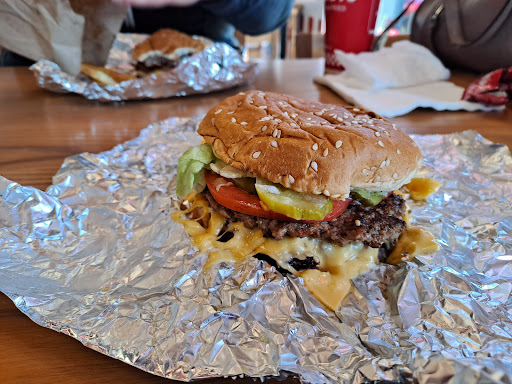 PANDEMIC UPDATE - Five Guys has what seems to me as the most stringent safety protocols in place right now (Sept. 2020). No dining in (a couple of outside tables are available), plexi-shields at cashier, social distancing marks on the floor, and an employee manning the soda station for you. They also offer condiments (ketchup packs, plastic condiment cups of mayo and other condiments) napkins, cutlery, salt & pepper, and peanuts by request only, not out for you to grab yourself. I was impressed by how the employees seemed to be on top of these new guidelines, taking them quite seriously, while other places seem to have rules in place, but no one really following through. Because of this, I upped my rating to 5 stars, even though $15/adult still seems pricey for burgers and fries. Delicious burgers with super delicious toppings, and quite possibly some of the best fries anywhere (and lots of them). You will no longer be hungry when you leave, unless you choose to be. Only reason I'm not rating it 5 stars is because I'm opposed to spending $10 on a burger and another $5 on fries and then more on a drink...but it's a GOOD burger and they're AMAZING fries, and i love the soda choices,, so I do it anyway...
