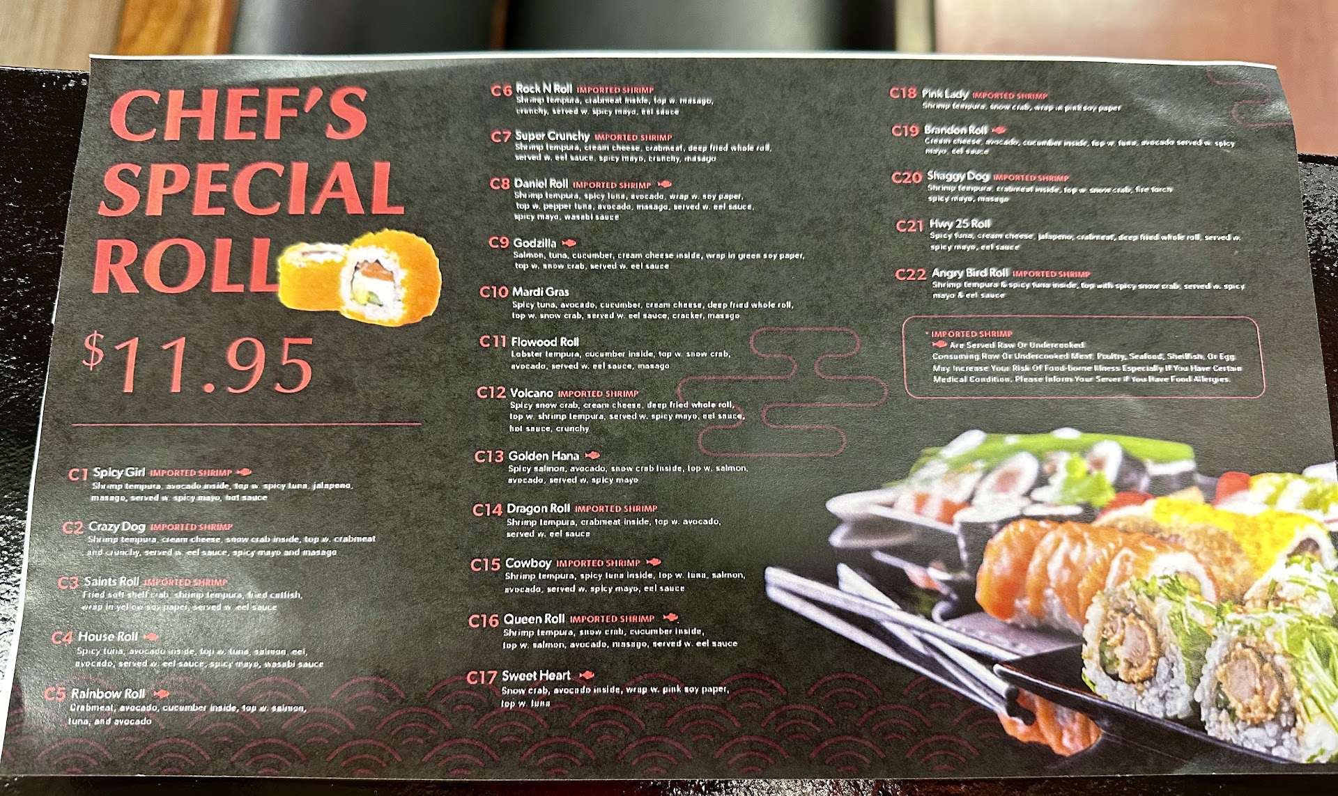 This place will surprise you. Let me get the negative out of the way. Our first time here, the young man helping us did not know the menu at all. He did not know the sauce that came with egg roll and finally decided it was an orange sauce. I asked for an eel sauce instead. He refused. Wanted to charge me more. Was ok had he been able to answer basic questions about the menu beforehand and even explain the sauces. Aside to that, the food was amazing! I sorta wanted it to be bad because of the service so I could dismiss the whole experience. But I simply cannot. The food was that good. I got the hibachi steak/scallop combo. The scallops were succulent and cooked to perfection. The steak was a bit chewy, but flavorful. The sauce was great. Vegetables were fresh and cooked to perfection. Rice was tasty and not overbearing. My wife’s egg rolls were fantastic, as well as her house (ginger dressing) salad. Clear soup was not remarkable and we ordered two, but only received one. But all in all, I will definitely go back and try other things. I just hope the service is better next time. I do recommend without...