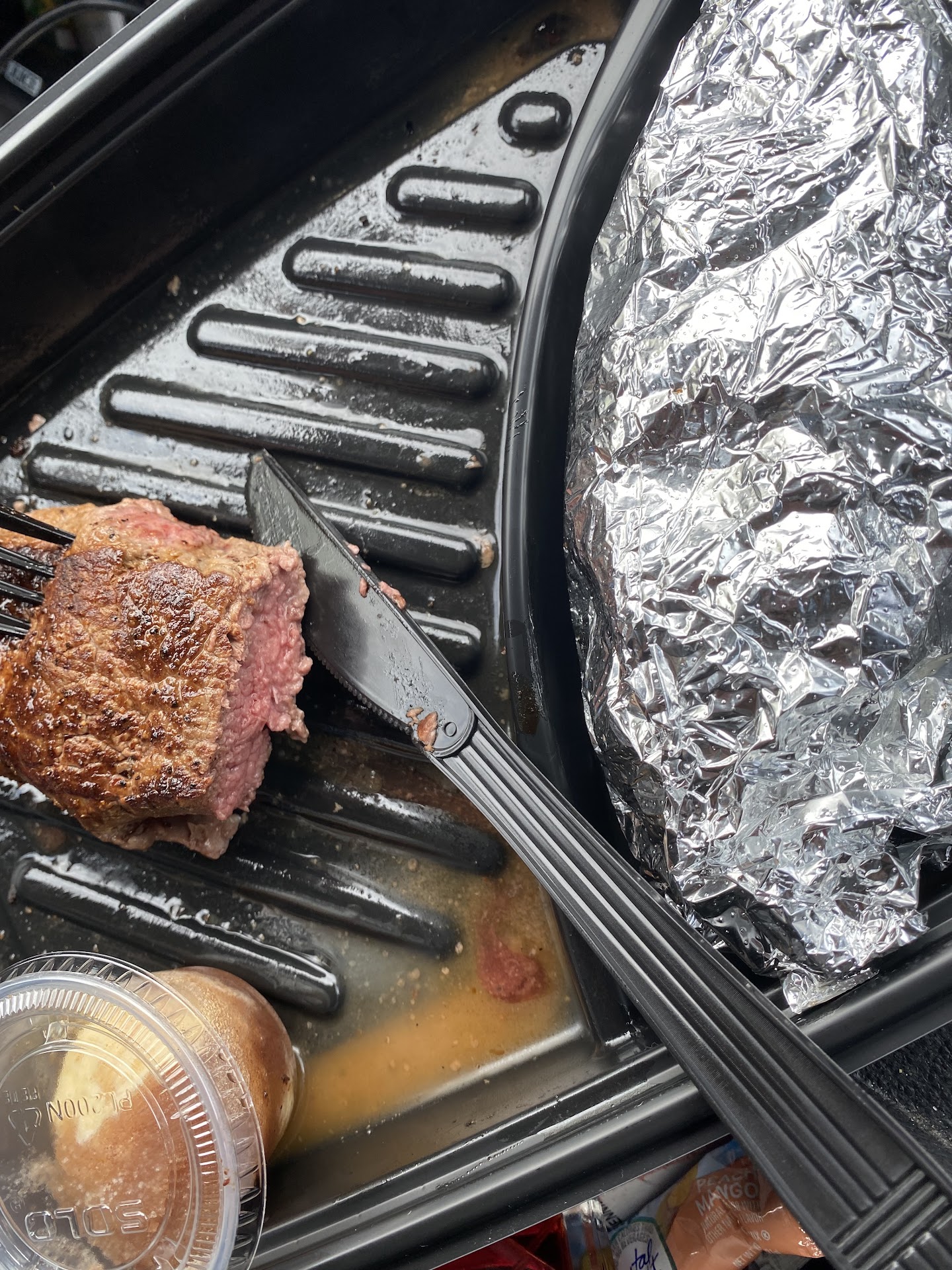 Management: You really need to ease up on the pepper. At least warn the customer the meat is this highly seasoned. Make sure the food is fully cooked before it is sent to the customer. This was the most highly seasoned steak I...
