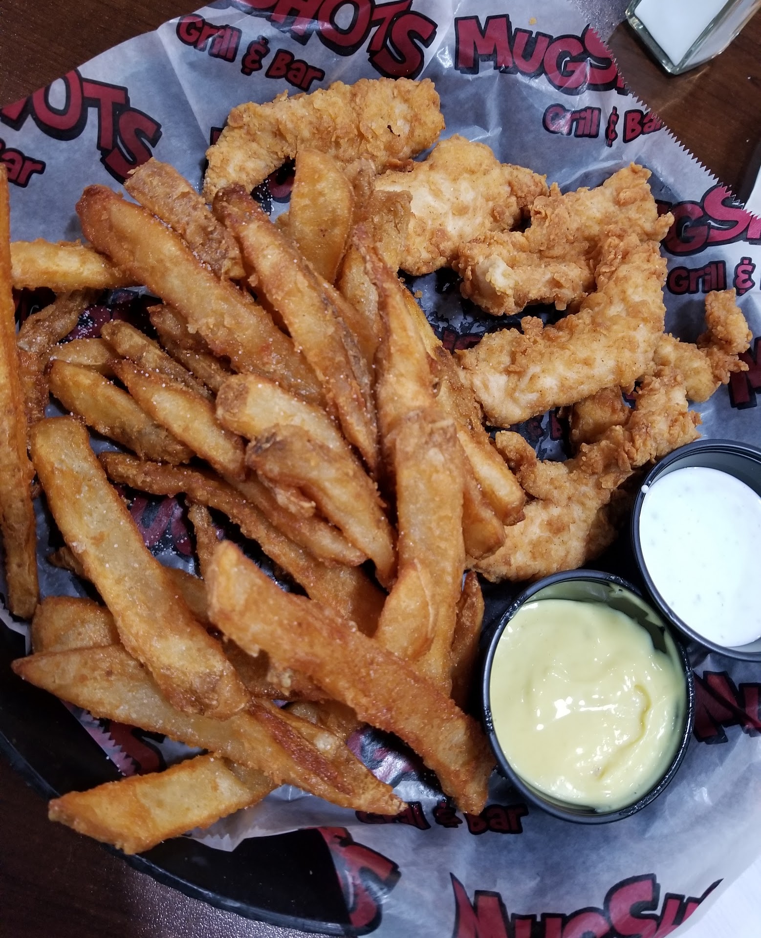 This was my first time in Mugshots and it was great! I know it is a good burger place but I wanted chicken! They did not disappoint. Beer battered fries and hand breaded chicken strips. I was craving fries (pregnancy craving) and this hit the spot. I did add salt to my fries because I love salt. Not that the fries need it, I just wanted more salt. :) Oh, and the ranch dressing was the bomb. I actually asked for more ranch because I ate it all before i was done with my food. The staff was super nice. My waiter, Chase, was excellent. He kept checking on me and making sure everything was good. Thank you Chase! I will definitely be back next time I am in Flowood! Excellent service and excellent food!!