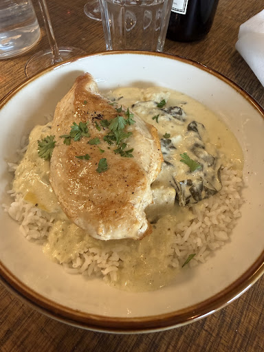 Restaurant has potential. Decor is beautiful and full of French vintage charm. Other than the owner/manager, the staff leaves you hanging waiting to greet or seat you. A nice hello with a smile and a "we'll be right with you" would be nice. I have had the same awkward entry/welcome both times I've dined indoors. The woman who seemed to be the hostess never once smiled not made us feel welcome. When asked if we had a reservation and we said no, she could have said no worries, or let me check, instead acted disapproving. Took a while to have a menu brought to us. Staff is comes across untrained(if they are being trained, it's needing more work), let's leave it at that. Food: soup and salad. Tomato soup was on the thin side, needed seasoning. Was accompanied by one very(baguette slice) small slice bread. Although when we asked for more bread, they over compensated by bringing out a whole plate of toasted bread several minutes later(maybe serve more bread to begin with). Salad there is always fresh and probably their strong suit.
