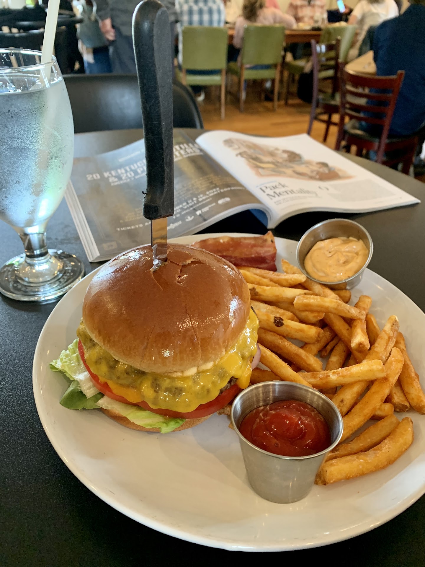 A burger was my intended focus today, so I ordered the Bacon and Cheddar burger with the bacon on the side. Menu states that burger orders come with house-made chip & pickle, but I upgraded to fries, which were indeed excellent; flavorfully crispy on the outside and tender inside.
