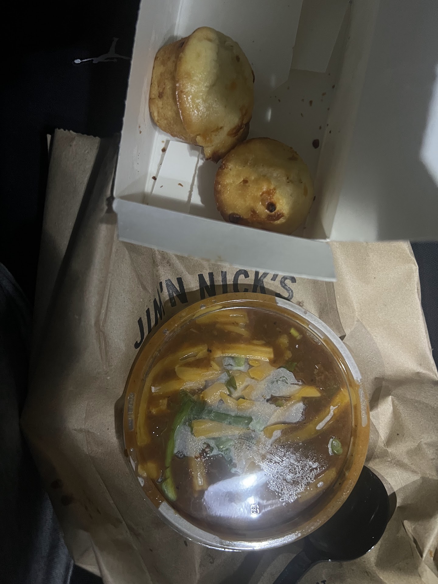 Read moreFirst time at this chain as I'm visiting the south. Stopped in for a cup of brisket chilli and a chopped salad. First off a critique. The girl who answered my call was so disinterested and lacked knowledge on the menu. The interaction was so bad that after I ordered I considered not going to pick it up thats how bad it was. But I really wanted bbq and that chilli sounded amazing. Onto the food. The chilli...... it was not even warm, but it was delicious. Lots of brisket, lots of big chunks of fat if you like that kind of thing, I don't but didnt matter the chilli was tasty. Actually from the pictures you can tell its not hot because the cheese didn't melt. If the chilli was hot it would have been a perfect 10/10 fat and all. The salad was huge, I mean huge, so much stuff and so crisp and fresh. The BBQ ranch I ordered was not bbq ranch and actually the ranch was the worst part of this whole experience, tasted like melted mayo which was disgusting. The smoked chicken breast, my oh my, so juicy, so smoky so perfect, thourally enjoyed that. Also the cornbread mini muffins are soft pillows of joy, really enjoyed that. If wasnt for the girls attitude, the cold chili and the deplorable ranch I'd have been satisfied. Still, I give 5 stars because of that chicken and what the chilli could be if it was warm or hot. Come on people, cold chilli and who is making that ranch? They need to be educated on flavour. I know this is a chain and as a result of my experience I'd never go back to a Jim and Nicks, there are other better bbq places everywhere. Try to...