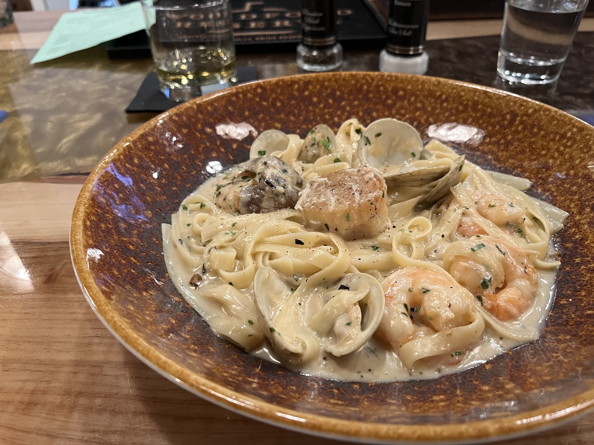 Seafood Alfredo is very good, rich flavors, there is an “s” on scallops… didn’t hold them to it but… fantastic entree.