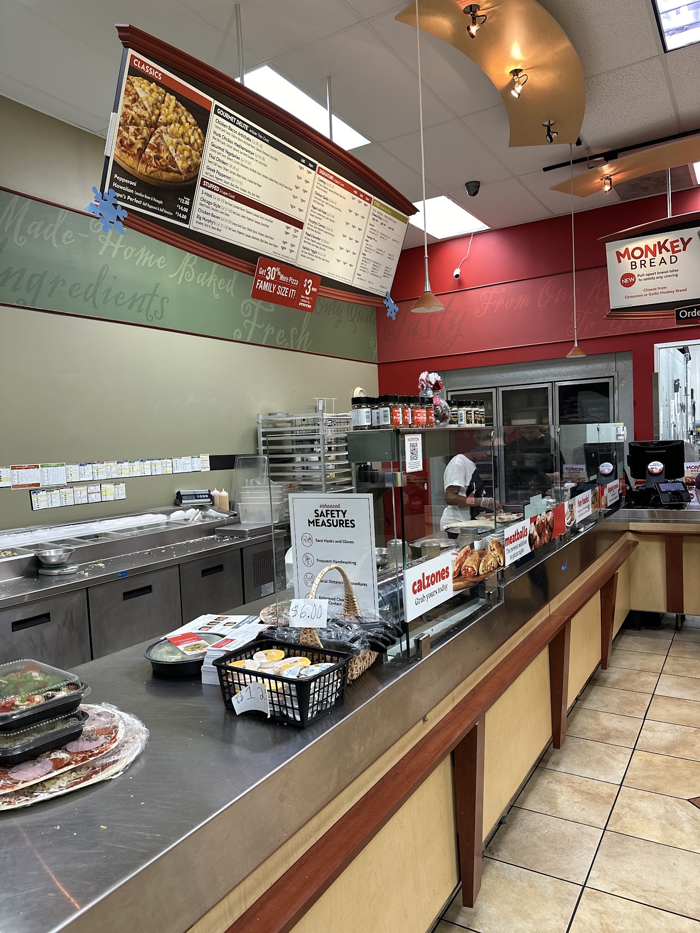 Read moreCanât rate the food. Itâs take out only, so no atmosphere to speak of. Placed an online order around 2 to be picked up at 5:15 . When I arrived to pick up, they hadnât even started it. The guys who were just standing around with their hands in their pockets said theyâd been really busy. However while I waited for them to make the pizzas, only one other customer arrived to pick up an order. It would be really nice if on the website they placed a nice piece of info:âWe do NOT bake the pizzas, you do.â I did see one place on the website where you could purchase unbaked items; leading me to believe it was an option, not the norm. The guys were rude, and we wonât be back. Okay. Finally got the pizzas home, baked and eaten. Ordered original crust on all of them. Everyone agreed they were âokayâ, and if that if they were original crust , we wouldnât want to see how thin their thin crust was.So again, we...