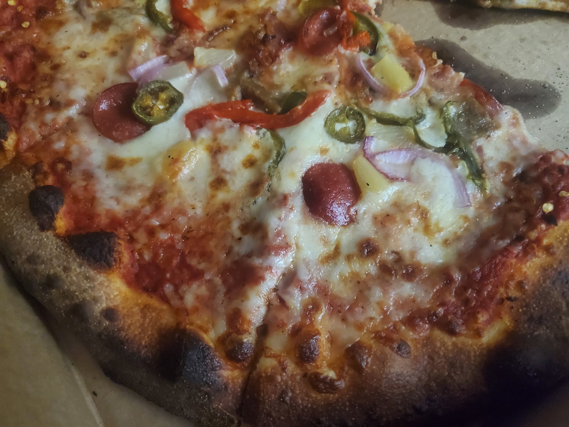 The pizza this time (3 days ago) was okay. Only a slight char on the bottom which is how brick oven pizza should be.