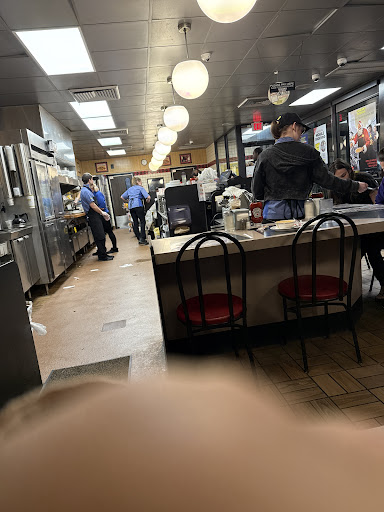 Stopped in last to feed 9 hungry people after a very long day of dance recitals around 9pm last night. Only one person spoke, she knew us from a different waffle house. They changed shifts right as we were sitting down. The new waitstaff walked in with attitude. As soon as she got there she put up a sign that they were doing take out only. She was definitely not amused about having to wait on us.