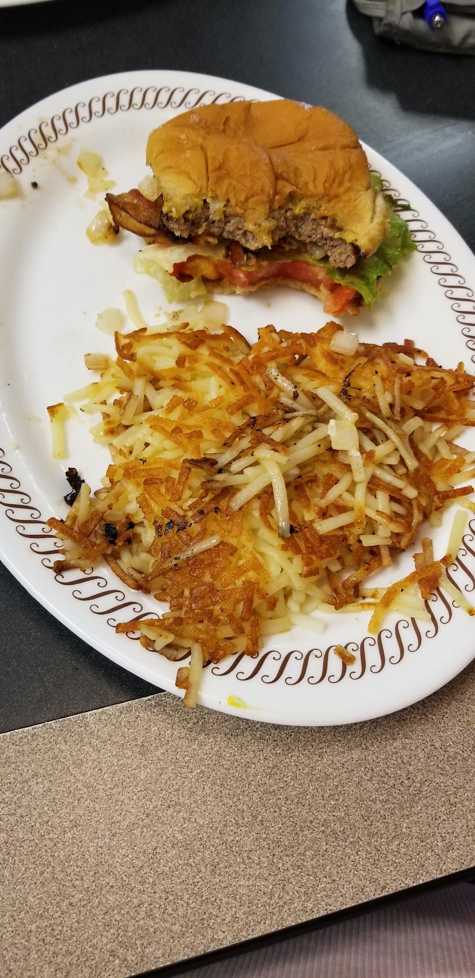Read moreMy hubby and I stopped by here super late last night after having just arrived into town. We were exhausted and starving from three days of moving into our new place nearby. We needed a good meal before finally being able to lay down in our new home and spend our first night here together. I'm sure we looked a little haggard and road weary lol but a sweet server with a smiling face greeted us and immediately helped us with getting our order in. Even at this late hour there was a small crowd of people dining-in and everything was being very well managed across the staff. Our food was prepared quickly and boxed up nicely in our to-go containers. Our server made sure we had plenty of our favorite Waffle House sauce and apologized because they had just run out of take-out utensils. This little incident is what's actually responsible for the reason I am giving my experience a 4, and not 5, out of 5 stars. Other than this one mildly significant inconvenience, our visit was a 5-star, easy. We will be back again soon though and based on what we saw last night I'm sure by then they will have corrected the oversight and earned their 5th star from me 😊 Coming from a lengthy career in administrative management, I always like to recognize times that I see a team work together in synch and share the common goal of simply serving their customers with positive attitudes. It's a sign of a well-run establishment that not only appreciates the patronage of their customers but also the staff who work hard to make things just go right so that the customers walk away satisfied. Customer service seems to be a dying art these days so when I am lucky enough to experience it, I really like to...