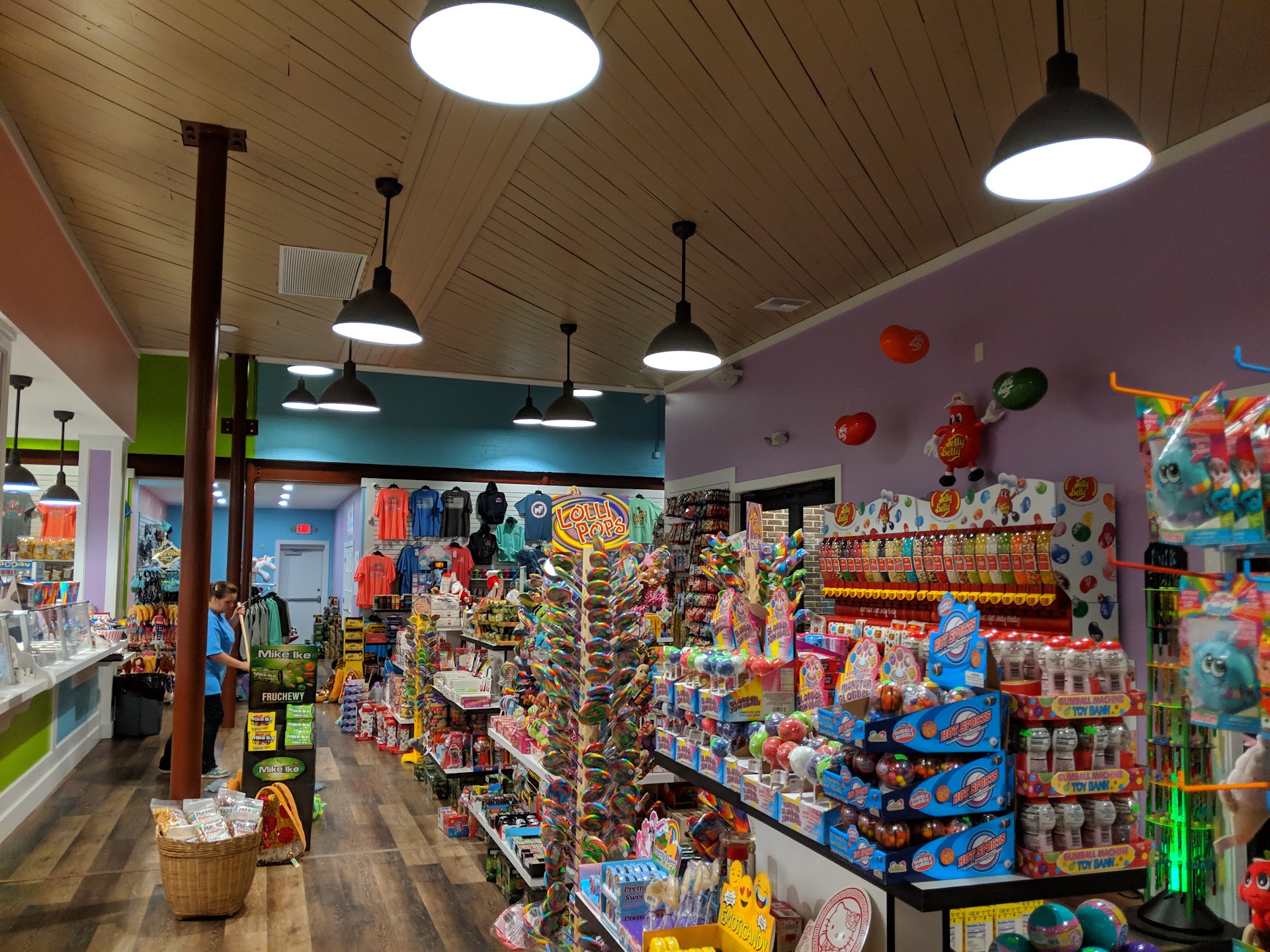 In addition to branded candies and confections, they also sell their own fresh fudge, popcorn, ice cream and some snacky-type stuff like pizzas and nachos. There's even a small stand of boutique sodas. Grass flavored soda, anyone? How about PB&J? They got all that, and more. Gift cards are available, too.