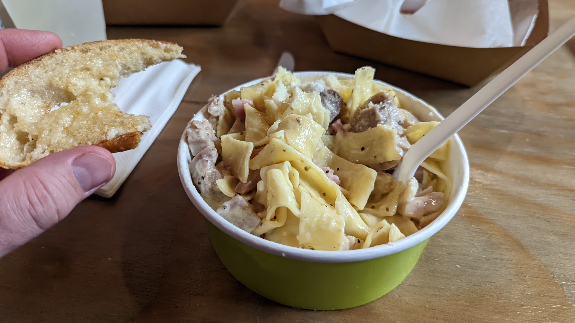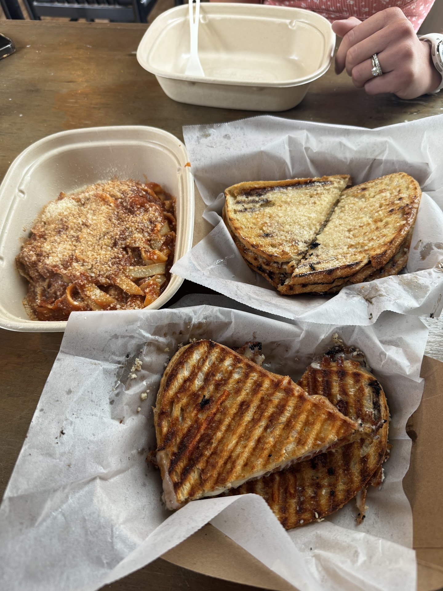 All the pastas were amazing and my son actually got a second order of the Cavatelli to go he liked it so much. The portion size was much, much larger than it appears to be in the pictures. Suffice it to say that I am a large man and I walked away absolutely stuffed from my bowl of Pappardelle that was absolutely stuffed with chicken and the most delicate pasta. The garlic bread was relatively thinly sliced, crusty italian bread with wonderful buttery, garlic topping that had been toasted to perfection.