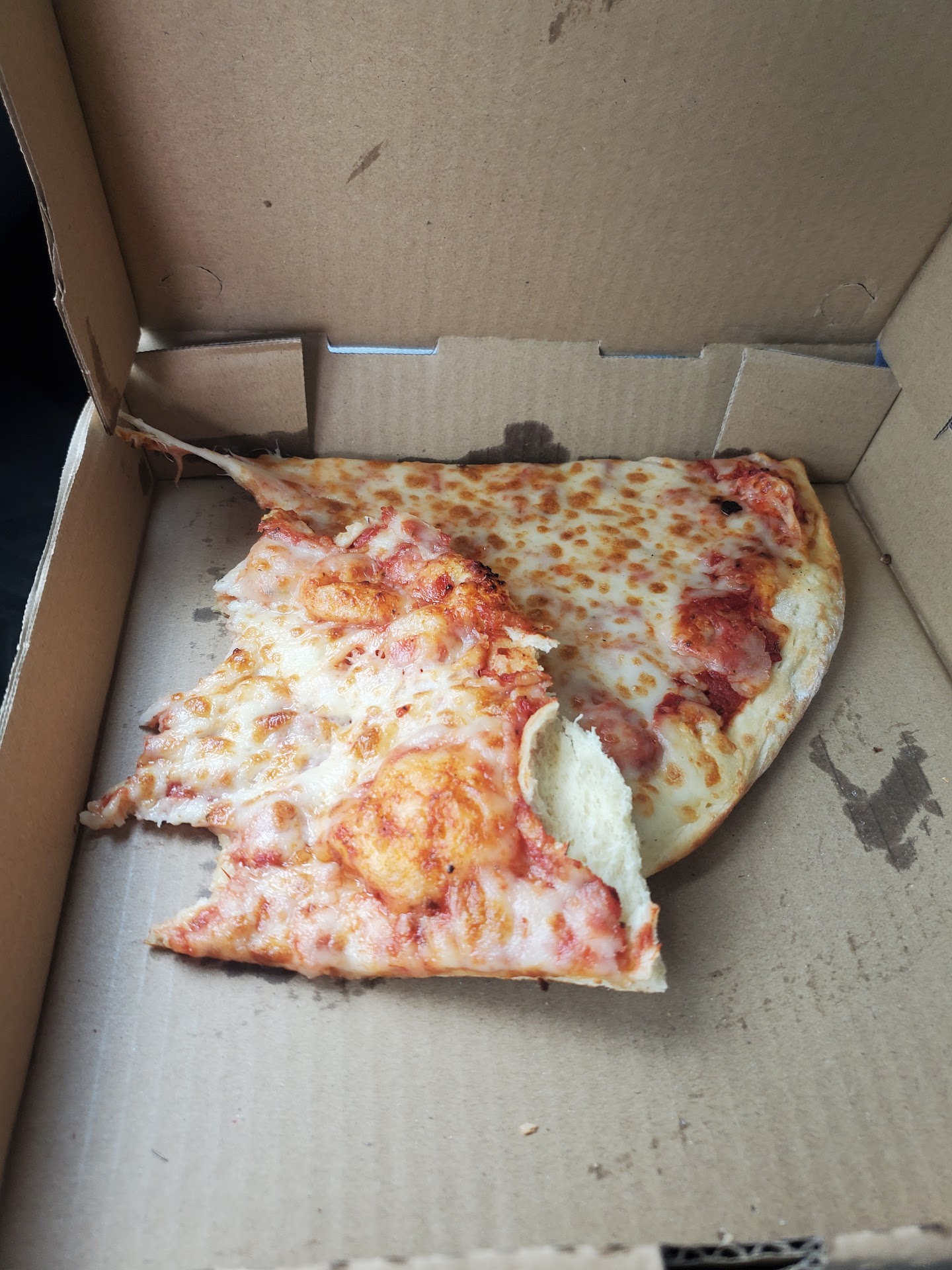 Read moreWas getting two slices of pepperoni pizza that came fresh out the oven and some guy gave us two slices for free and was shocked by it.
