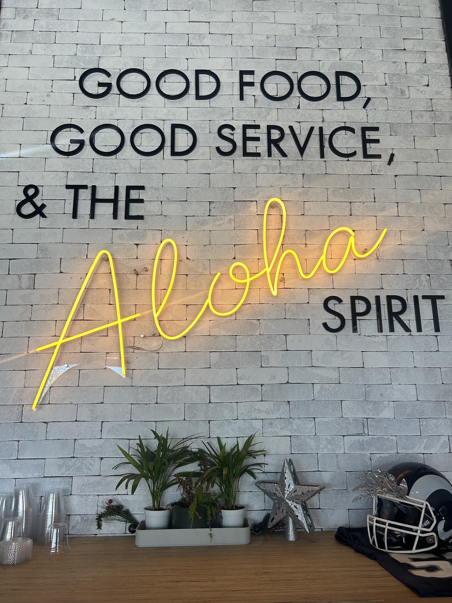 Read moreI am always skeptical of new places, especially when I’m not immediately attracted to the menu photos - but this restaurant was WORTH the chance. We showed up and was immediately greeted with a friendly “Aloha!” And tended to then and there. Dean, the sweet woman at the register, took our order with all our specifications and got the kitchen started on it quick. It was a bit of a wait, but understandable as the manager is in the middle of conducting an interview so we waited patiently outside. Upon coming back inside to get condiments (they have great sauces laid of for customer use) I saw the kitchen bring the food to the counter and the wildest thing happened.. Dean cross referenced the receipt to each order 😮💨👌🏼 she found a mistake and had it handled before we ever knew (or so she thought lol). I was so impressed! I wanted to give accolades to her manager, but didn’t wanna disrupt her hiring process. I always enjoy places that go the extra mile. This team works well together, takes constructive criticism easily and quickly solves problems for maximum customer satisfaction 👐🏼 Come back for the edit after I get home and dig in 🍴 cause it...