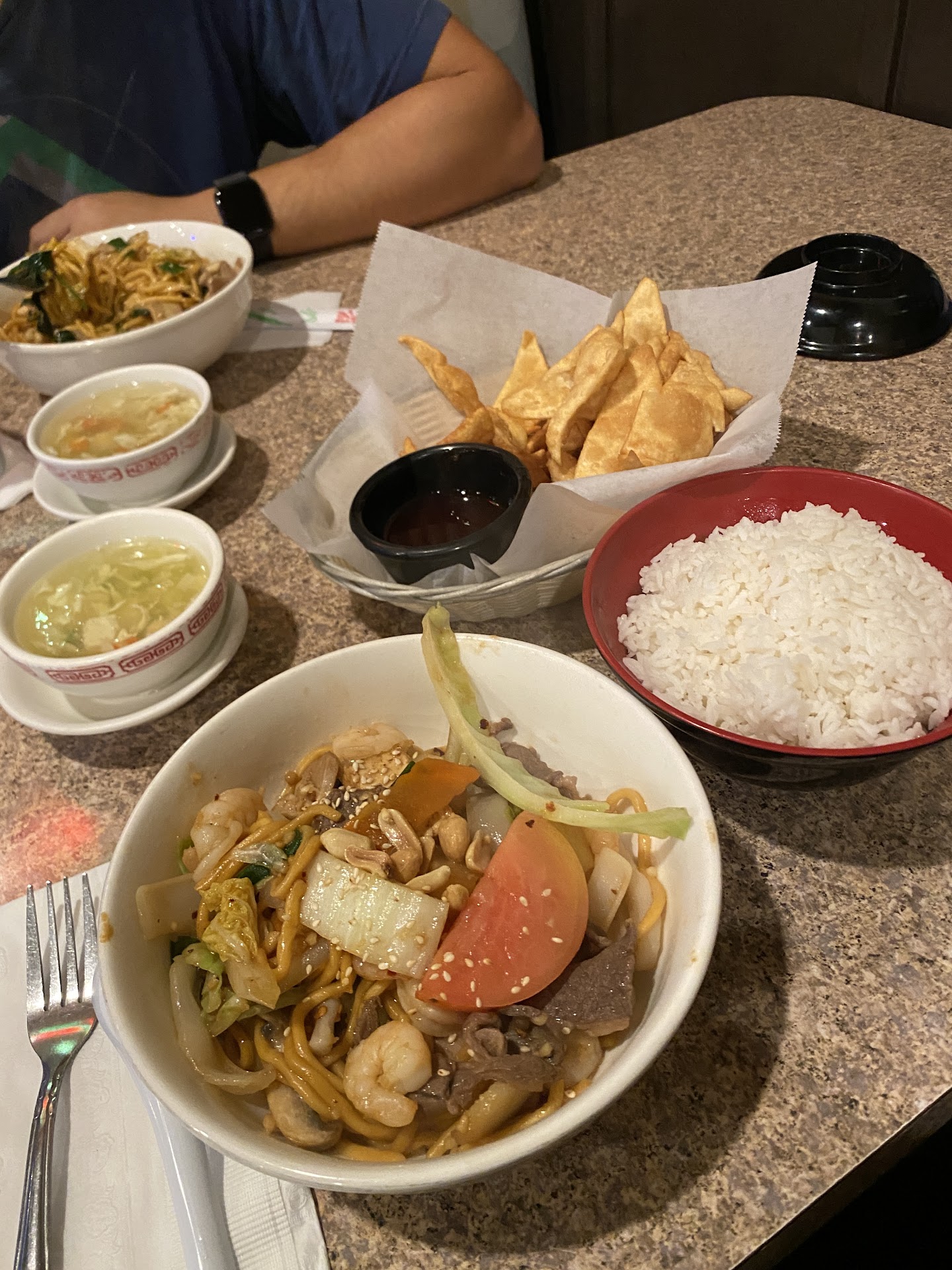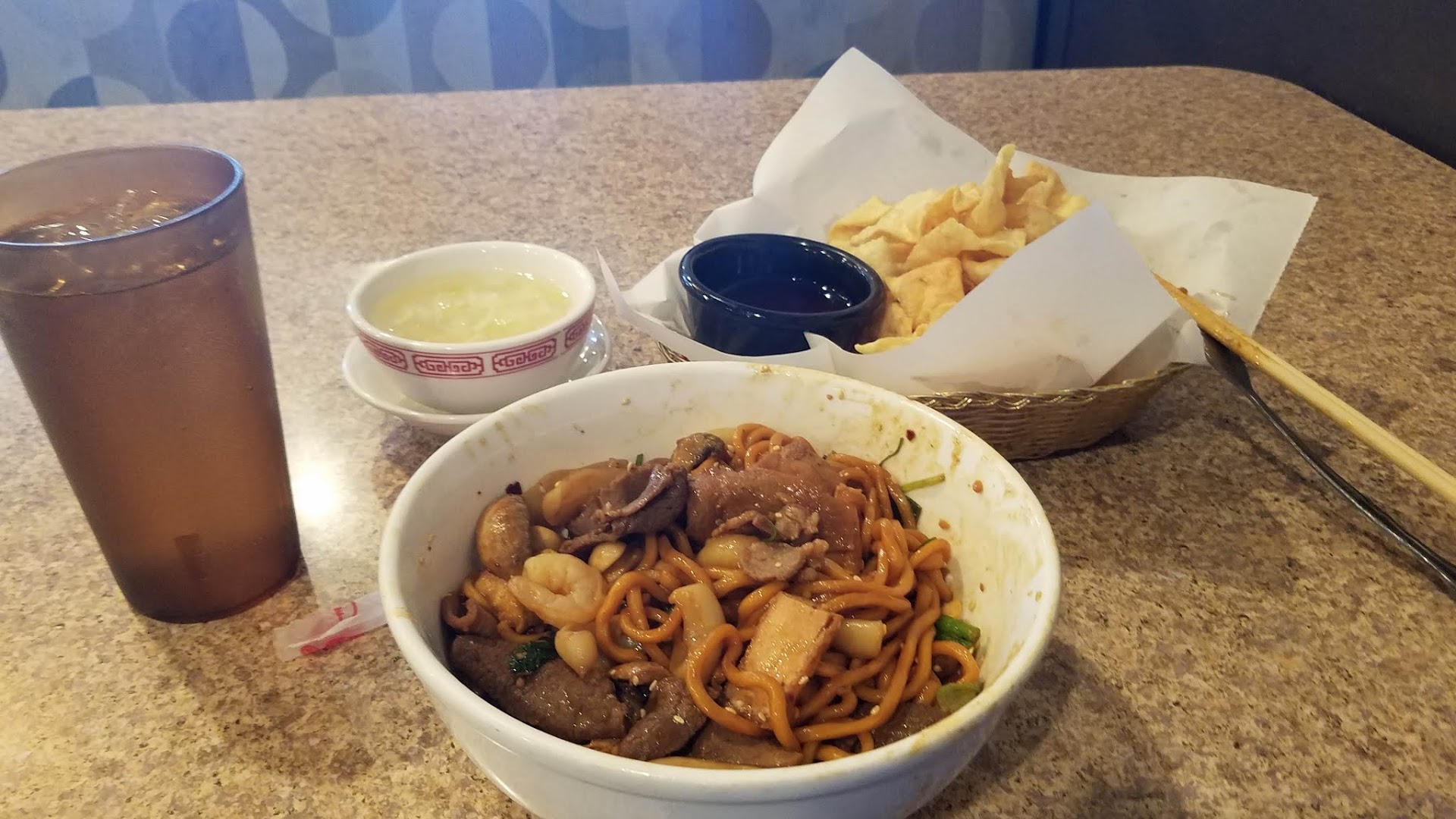 With AYCE, you'll get a big bowl of rice, soup, and crispy wonton chips. The soup was bland. The crispy wonton chips were good. Overall, it was too expensive for the price. The meat & veggie quality were good but the sauce was meh. It was a solid 3.5...