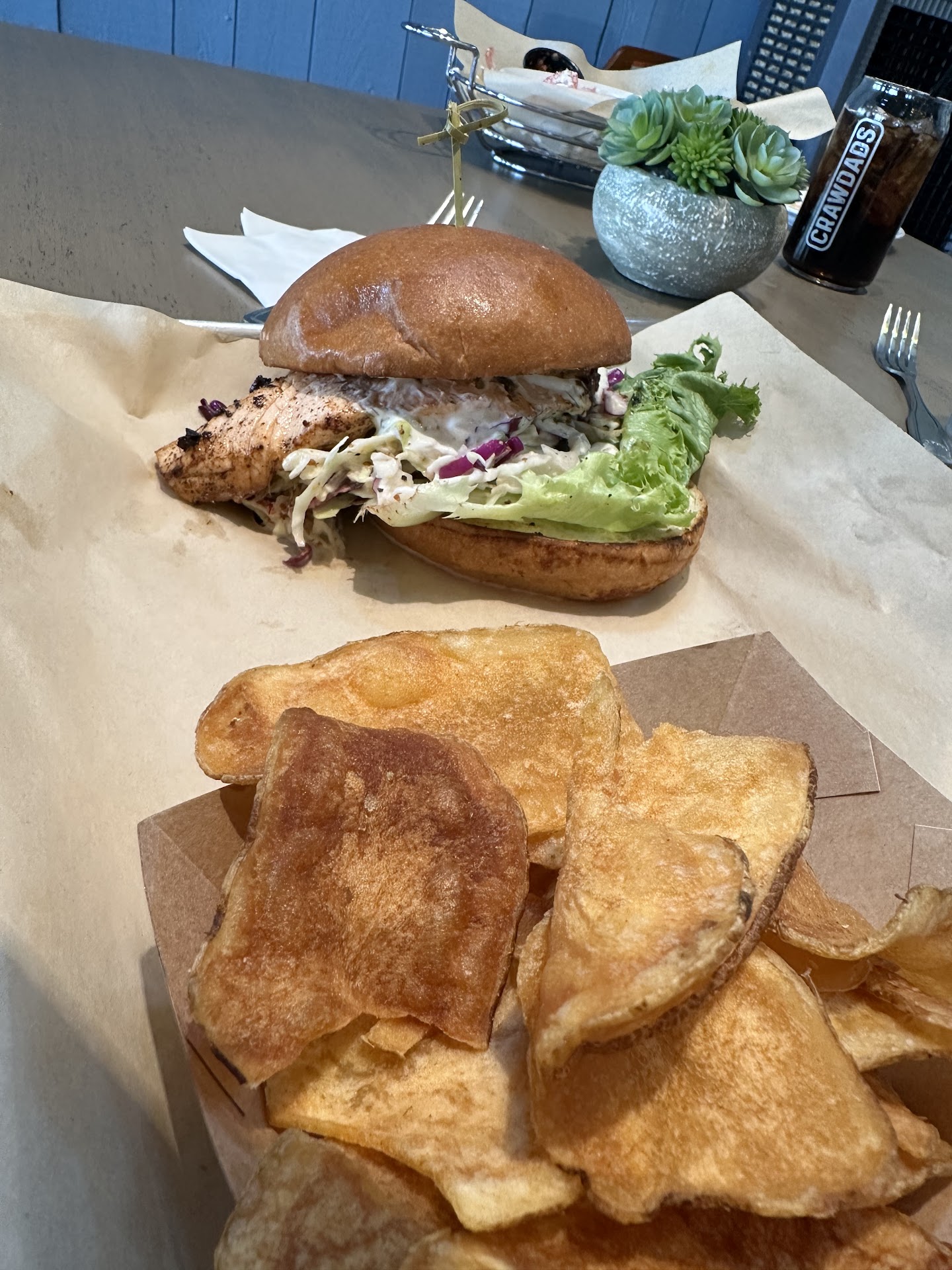 Read moreThis well deserved poor review is long overdue. To the owners....we left you 2 messages never to receive a call back!! Clearly you are more turn and burn dining than interested in your guests dining experience. My husband has managed 5 star clubs and hotels and couldn't believe you weren't on property touching tables , nor was any manager; as you had just recently opened. So, not surprised by so many poor reviews. Lunched with my husband and 4 others. Food mediocre at best . Pasty clam chowder served lukewarm . Couldn't taste any clam juice, tough clams, rubbery tough chicken; sloppy presentation.sent several dishes back .We frequently got up to get our own share plates, silverware, napkins, etc. received the wrong cocktails,....I could go on. server had a great personality.... however lacked knowledge (fault of owner and management) stated he had no bus help and that the restaurant was short staffed. ( guests don't want to hear excuses.) We are not the kind of diner you want to disappoint. This group dines out frequently with friends and are "discerning foodies." My friends tipped 30 % cash tip feeling empathy for the server. Additionally my husband and I tipped generously unaware there was a 21% gratuity added. He should have graciously and ethically mentioned this when we handed him so much cash. He ended up with a $100 tip on a bill around $200. A $40 tip would've been 20%. We would've tipped maybe $60 still well over 20 %.... but certainly not $100 . We recently were at Gordon Ramsays Hells Kitchen in Tahoe and the gratuity is 20 % but you charge 21 % !? laughable!! Due to the lack of care or follow up we will NOT return. There is too much competition to be so non chalant. You will not sustain your better diners who expect more. My friend has told everyone at the board meeting in our gated community to not bother with Crawdads, reiterating our unenjoyable disaster of a lunch. So you've lost us and another potential 20 or 30 guests in our community that do listen to each other's advice on which restaurants to frequent and...