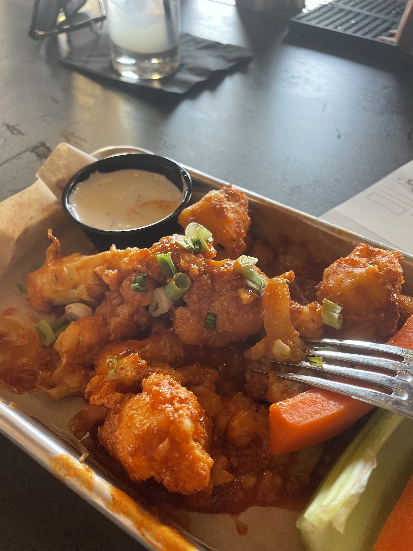 Our appetizer experience was equally disappointing. We ordered cauliflower wings and had to wait 30 minutes for them to arrive. When they finally did, they were lukewarm at best and lacked the crispiness one would expect. The long wait was not justified by the quality of the dish, making it a poor choice.