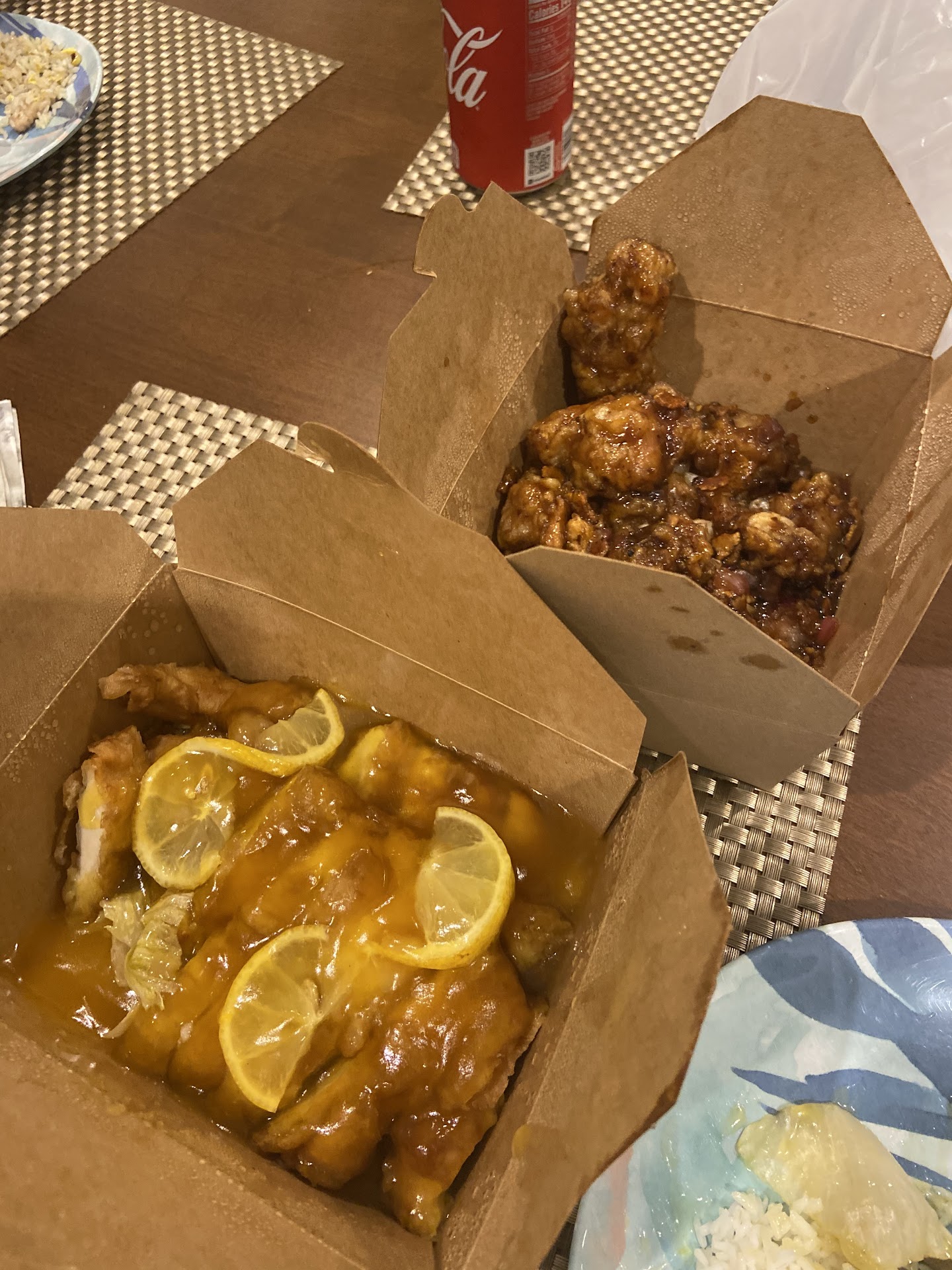 Made large order online for pick up at dinner time. Spring rolls were good. Have never previously had wonton soup but this had alot of vegetables, but the wontons were kind of huge (not bite size) & sadly were not appetizing in anyway & one bite was more than enough. The northern vegetable chow mein was a large serving & was good. The Lemon chicken was unusual in that the chicken was breaded baked (?) and then slice, laying in a bed of typical lemon sauce. That was ok, but the breading separated from the chicken and so was not really that great texture wise & really bad to eat reheated. The fried wontons were also something new to us. They had a cream cheese and slight seafood (?) creamy center. They were great. the Cashew Chicken was on the greasy side with oddly shaped & chicken pieces that were unappealing in texture. It also had disappointingly few cashews. The Canton salt & pepper Sea bass was very good.The fried Rice was a generously large serving & they did not skimp on the vegetables! It had egg as well as some bits of broccoli and small slices of zucchini added to the usual peas, carrots & corn. Sadly, the Shitake mushroom chicken was inedible. Greasy & the flavor was so bad that although all of our party loves chicken, mushrooms & snow peas, we didn't swallow any of it, but threw it out. This was our first time eating food here & felt that the portion sizes were matched well with the prices, and we might get food from here again, but would probably stay with the things we had tried & liked. we picked up our order for take out, but the inside of the restaurant was...