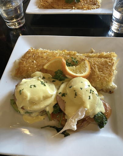 The rest of the meal wasnât much better. I had the âSmokey Benâ. The smoked salmon was good. The asparagus had not had the woody ends snapped off. The poached eggs were virtually hard-boiled. So much for cutting into the warm egg yolks and having them run all over everything and make a delicious mess. Instead of the classic English Muffin, the whole thing was served on a too-big bagel that made the dish too dry The Hash-Browns were properly cooked but had zero seasoning and were tasteless.