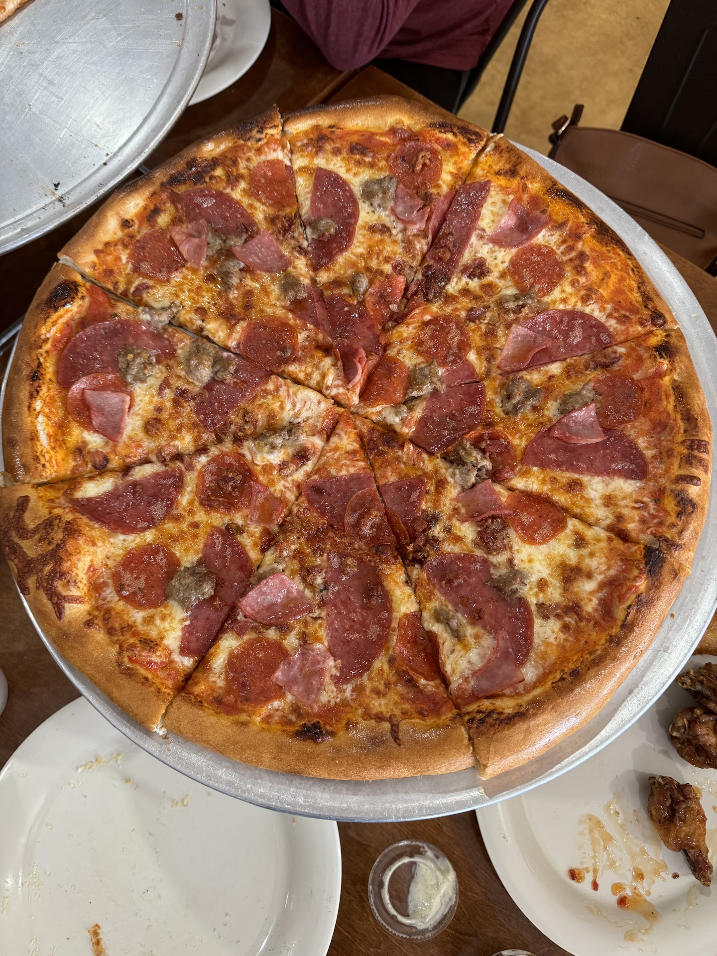 We ordered 3 pizzas — a cheese, a margherita and a carnivore, along with a mix of sweet chili and hot honey wings. We ordered the pizza extra crispy and they got them just right! We inhaled the first two so I wasn’t able to get pictures except of the last one. My favorite were the margherita and the seeet chili wings. My family really liked the carnivore. Service was great, too!
