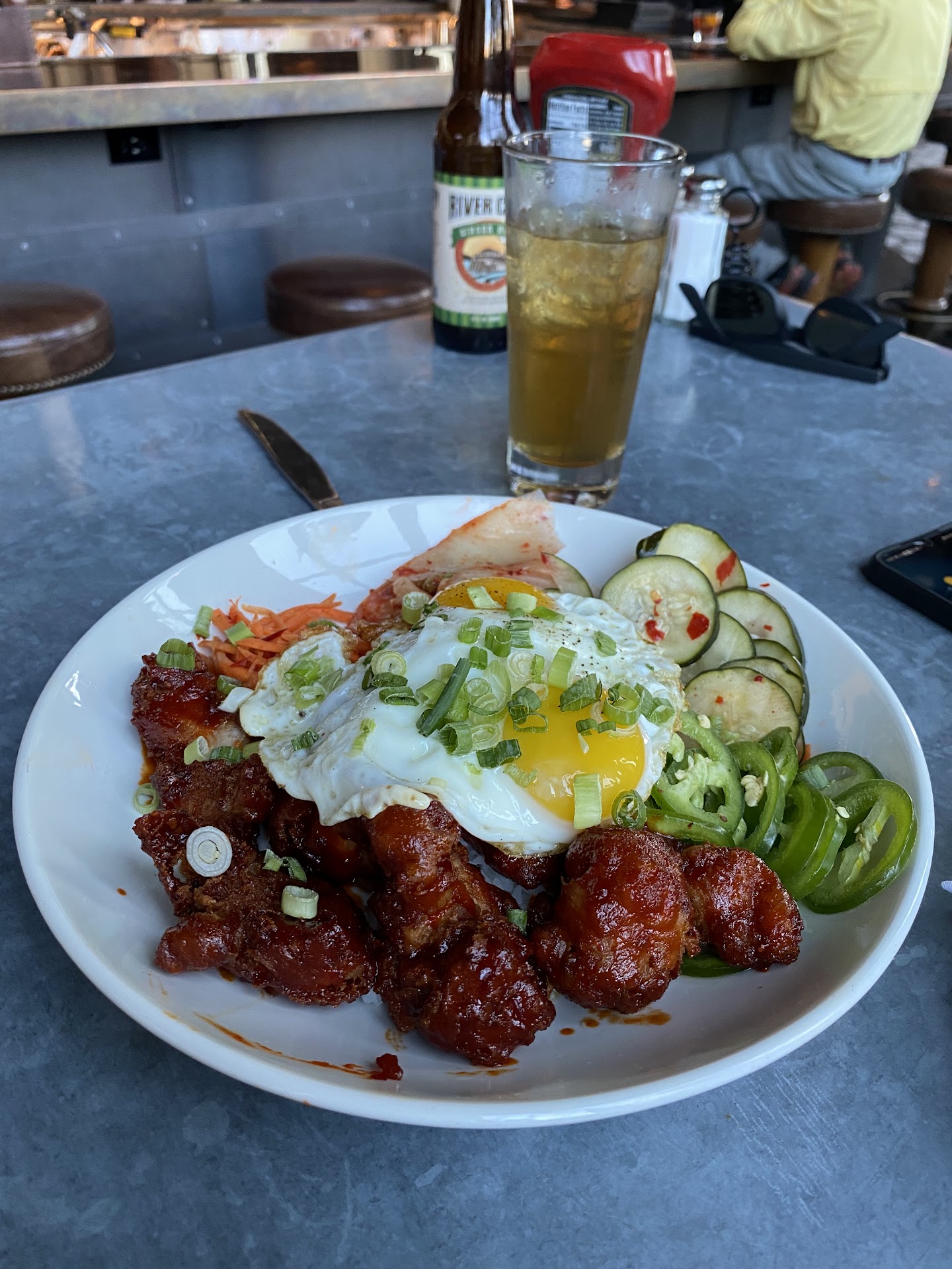 Read moreI craved a steak for the past few days. My acquaintance picked out this restaurant and I was open to it because they had a Hawaiian ribeye on the menu. I ordered that Hawaiian ribeye. In fact I ordered it twice and it came out well done both times and kitchen actually blamed it on the marinade and the sauce, I don’t normally post negative reviews but the owner of this restaurant and Allan Wong should know that that steak is prepared wrong and that our nice Server had to deal with two refires back to back clearly both well done. Plus, I left hungry, still craving steak and settled with taco express.. A sauce and marinade would not create the steamed steak that I got; flavor LESS and I’m not gonna go through my past experiences at Houston ‘s and J Alexander, and Capital Grille but I know for sure that no Hawaiian ribeye should look and taste like those steaks did (at $32) The rest of the food was fantastic .. great looking staff, friendly and professional. Awesome service. the bun short rib tacos were great. My buddies Korean fried chicken plate was great. The beer selection was great. The music was awesome, but I wouldn’t order the steak. If you’ve ever visited J Alexander’s or Houston, you know what a Hawaiian ribeye should look and taste like as well.