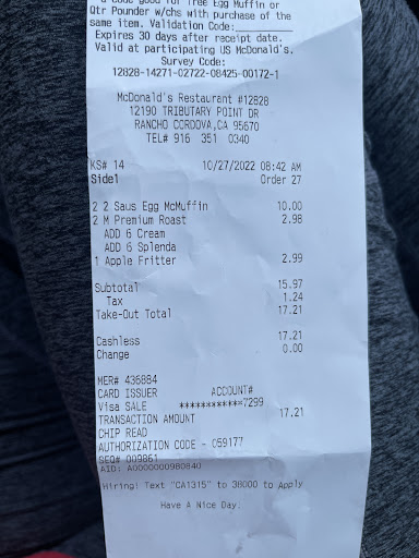 Read moreMcdonalds is fine until you get home to see thay you didnt get all the food you payed for. I would be more understanding if it was even remotely busy but it wasnt when I ordered curbside and waited to get my order with 20 piece nuggets. Only got 10. Very frustrating when the ticket on the bag in big letters clearly states 3 items, one of which is 20 McNuggets.