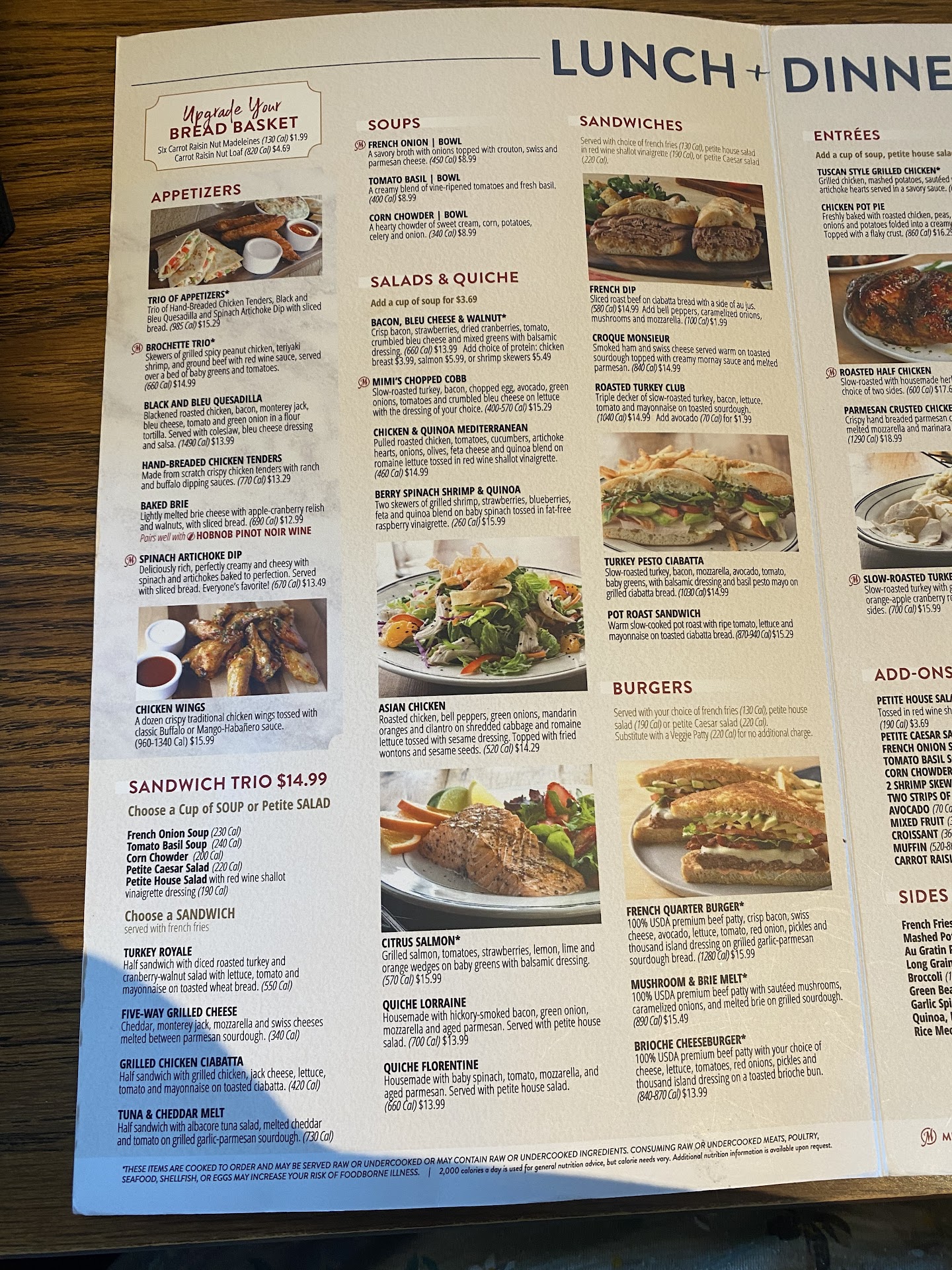Yes we went into movies and who served at the front door or escorted to the table oh yeah there is a party of three my daughter my wife and I guy said would it be like to have any Cokes or Beverages and we told him what we wanted and off you went when he came back I told him I was very hungry. Could we please have the rules and the next sentence or two who is very important yes we went into movies and we were served at the front door or just quoted to the table there is a party of 3 my daughter my wife and I I said what did we like to have any coax beverages and we told him we wanted and if you went when you came back I told him I was free hungry you could we please have the rules at the next sentence for two is very important the rules came in they were quite warm and but what was missing what's the carrot cake which I asked the waiter where's the carrot cake and he informed me that they are just continue that part of the rules that back up by back on all memory that we start wanted Mimi's many years ago and surprised I never quit serving the rolls but they just stop asking out of the people that wanted rolls if you wanted them they would give them to you or and what was missing was the carrot cake what is the waiter where's the carrot cake and he inform me that they are just continue that part of the rules that back up by back on all memory that we stuff want to meet me so many years ago and we start going back to the end I thought you told me a list of rules again well to my surprise I never quit serving the rules but they just stopped asking the people that wanted rolls if you wanted them they would give them to you I suggest management might want 2DS starts at practice back up again because people come to enjoy those rolls while they're sitting around and going through the menu and deciding what they're going to eat eat that day when the food came it was very quite good plates are hot and the food is quite good Services excellent like service always is at Mimi's pain management comes around and ask is there anything that you can that he can do to make your experience a lot better which I did bring up the carrot cake again the management and he said well that's above his pay grade I said thank you he said I would fill out one of these things and send it off to management even though he was the low chain on the pole management thrown off had an excellent meal Services was good and I look forward to going to Mimi's again what you try to do at least a couple times during the month...