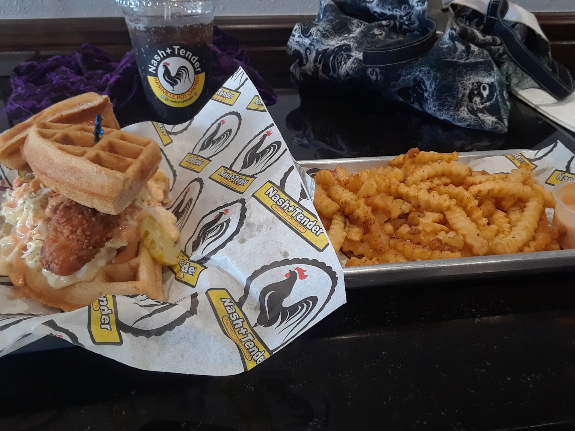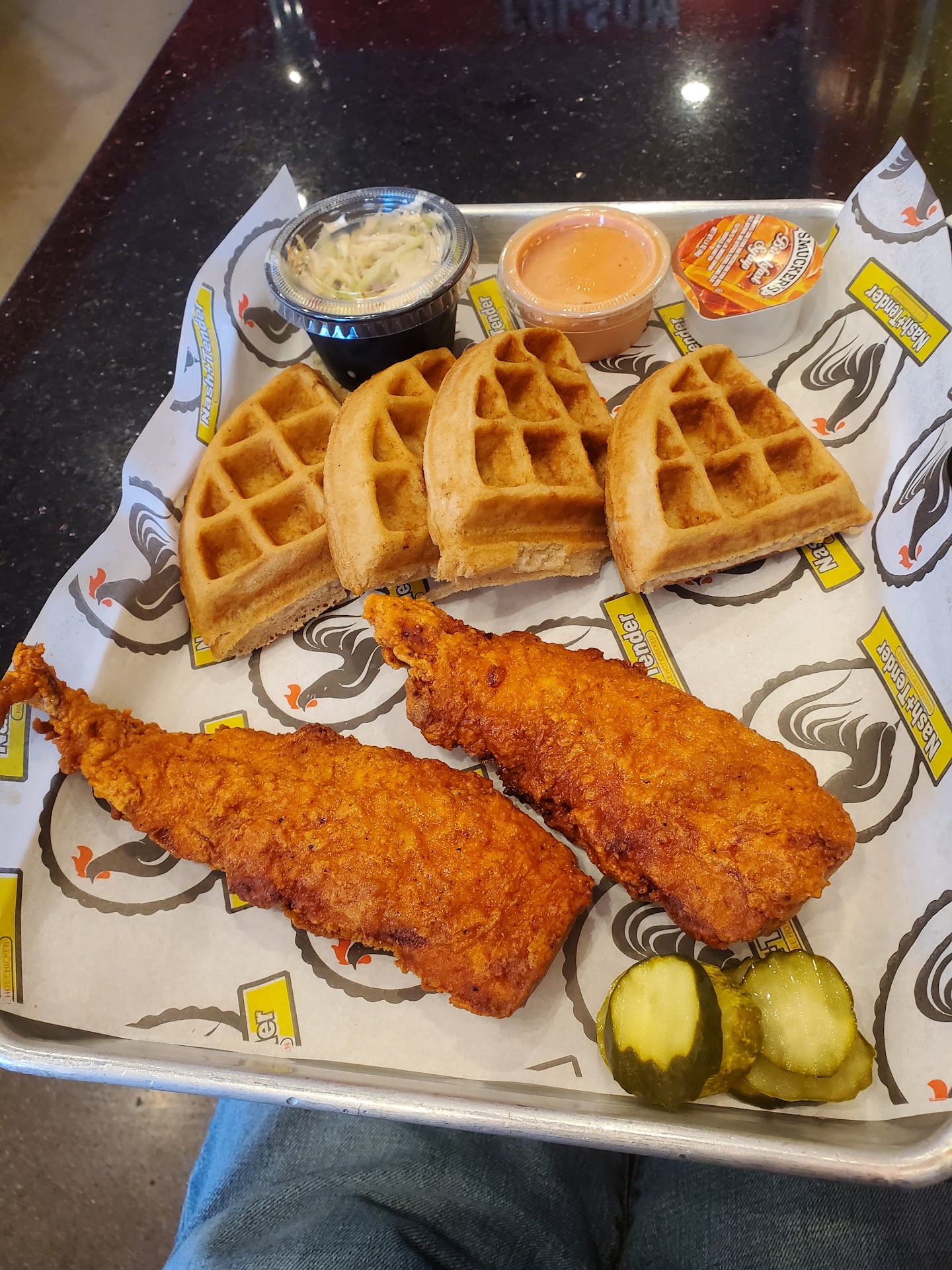 Read moreThe chicken was crispy and most importantly moist. I like that there are various level of heat; I am not a spicy person so 'country' style was perfect for me. The portion sizes are deceivingly big. Got the waffle sandwich: fried chicken, coleslaw, pickles, special sauce, and Mac n cheese on the sandwich with a side of fries. I think next time I will be splitting the sandwich. Mac n cheese was good! Rich, creamy, and smooth. We ate in the store at the high top table; service was excellent. Will definitely...