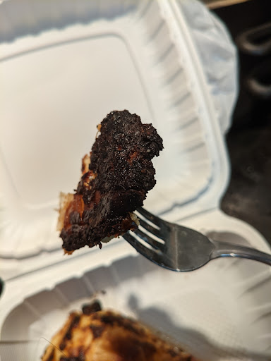 The server who took my order asks one of the cooks, standing around doing nothing, about the tyropita. She laughed saying she forgot about it and pulls what looks like a burnt tyropita out of a small oven and another cook starts scraping burnt pieces off of it with tongs then puts it in a to-go box. I asked the server who took my order if it was burnt and she replies "What? No, no. It's not burnt. No. It's not burnt."