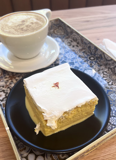 Read moreI got the Qamaria latte (hot with soy milk) and it was SO fragrant and delicious, I shed an internal tear when I had my first sip. The flavors instantly hit and sit on your taste buds, the latte isn’t too bitter/sweet nor too milky. They have multiple non-dairy milk options which is awesome. I also got the saffron milk cake and it was a generous serving. I inhaled half of it and started getting full when I had about 1/4 left. The saffron cake is like eating sweetened air or a rain cloud, such satisfying texture and not too sweet either.