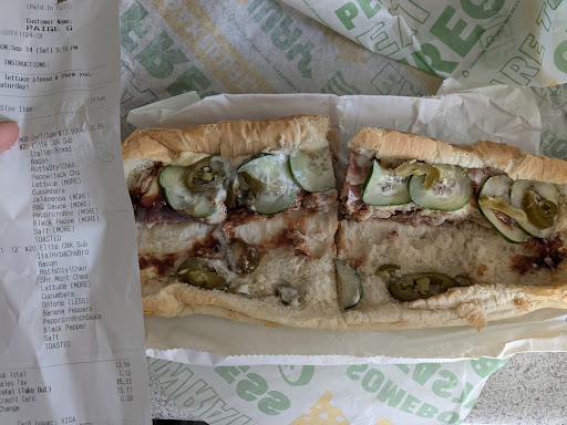 Attempted to give 1/2 the protein portion Didn't cut the sandwich, stale bread, owners son was working the register, tried to get me to pay before the sandwich was made, place is sus at the top of the list. Jimboys next door if your in that area is WAY better. Just don't give this subway a chance, you WILL be disappointed. Also it was not clean on any surface and the toppings...