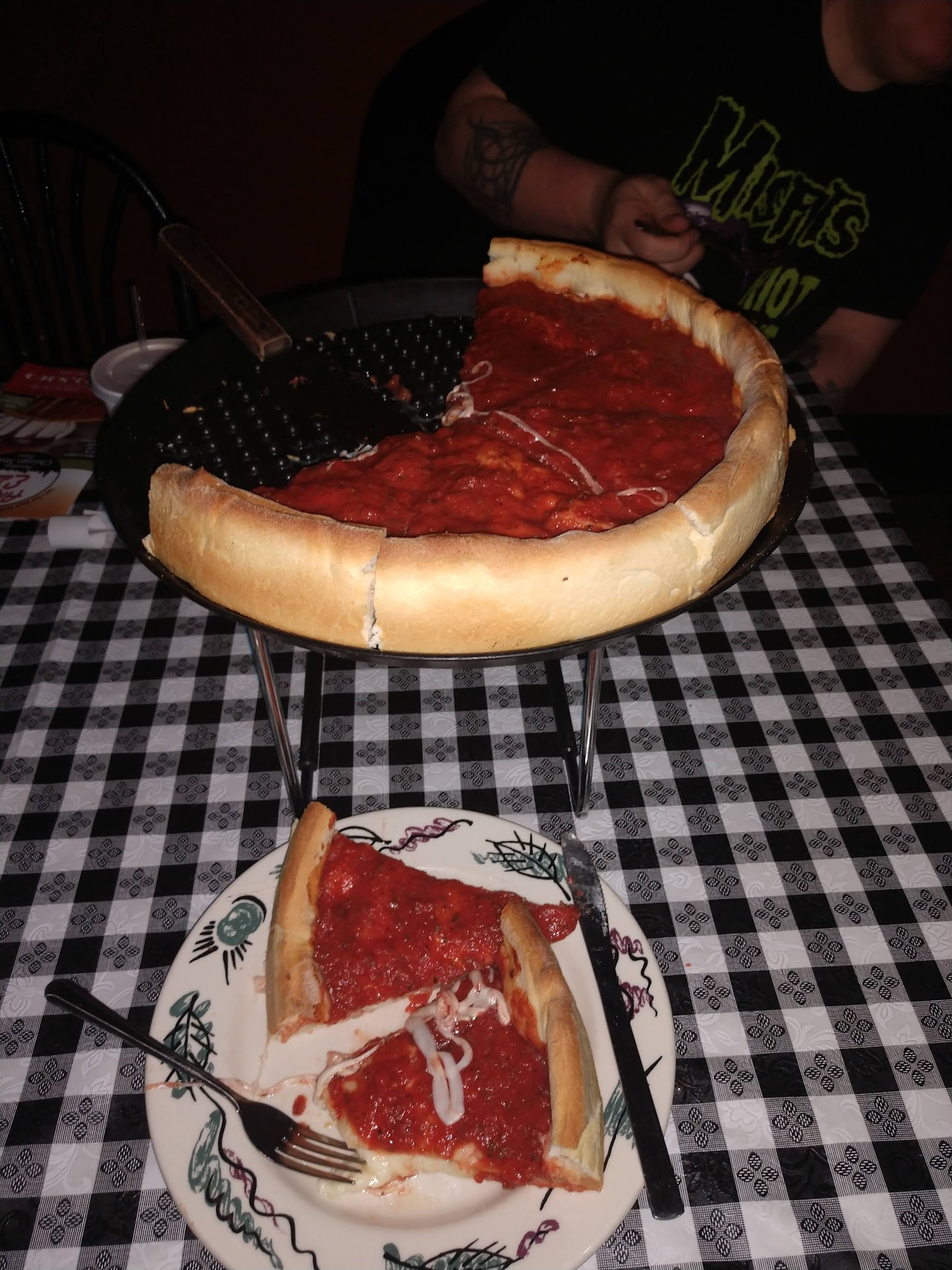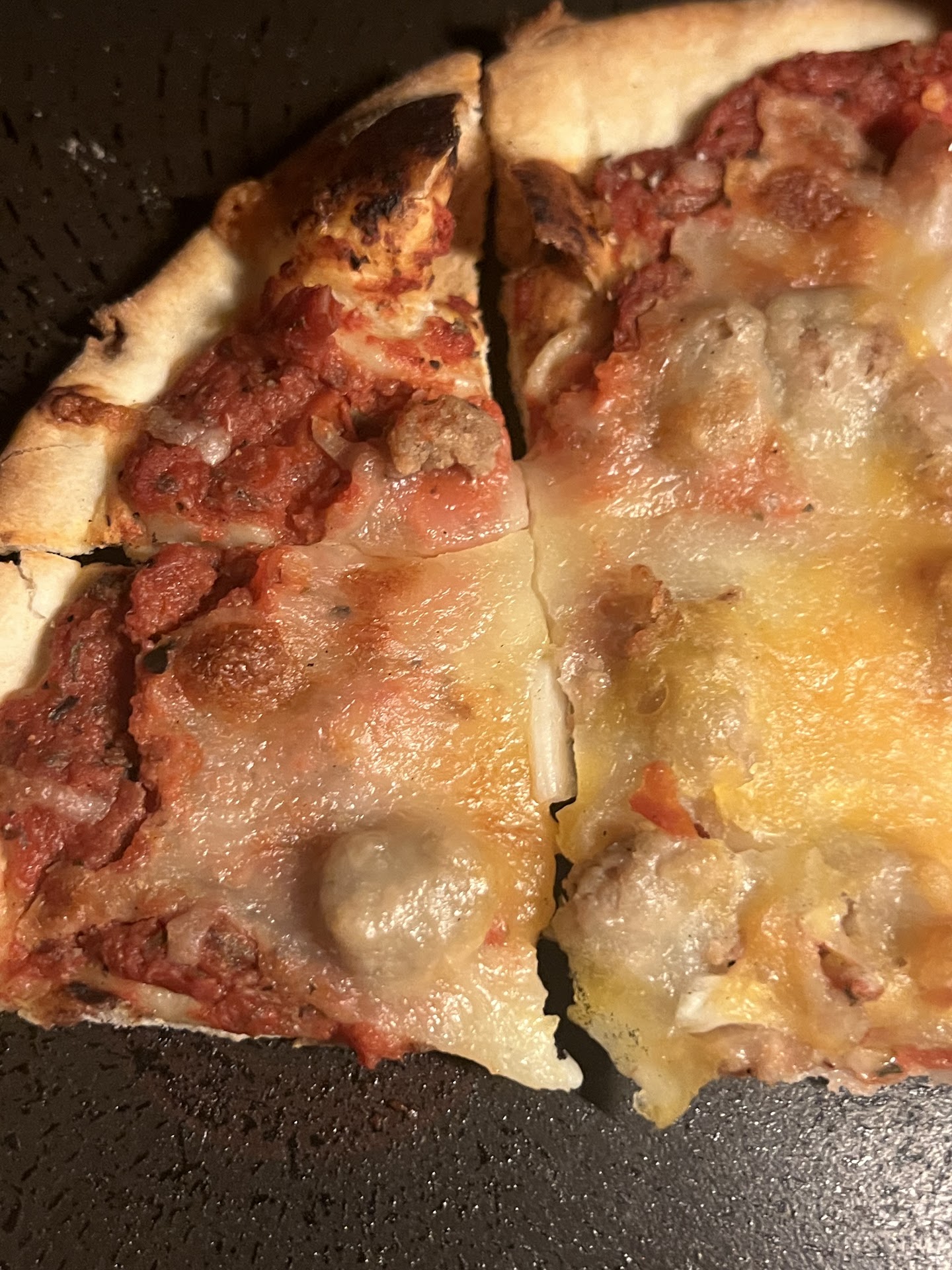 Then we ordered a large Chicago style deep dish & let me tell you it's too die for! The cheese is so gooey, the crust so nice & toasty & that sauce, I just wanted to drink some right out of a glass! Chicago pizza only 15 minutes away, loved it.