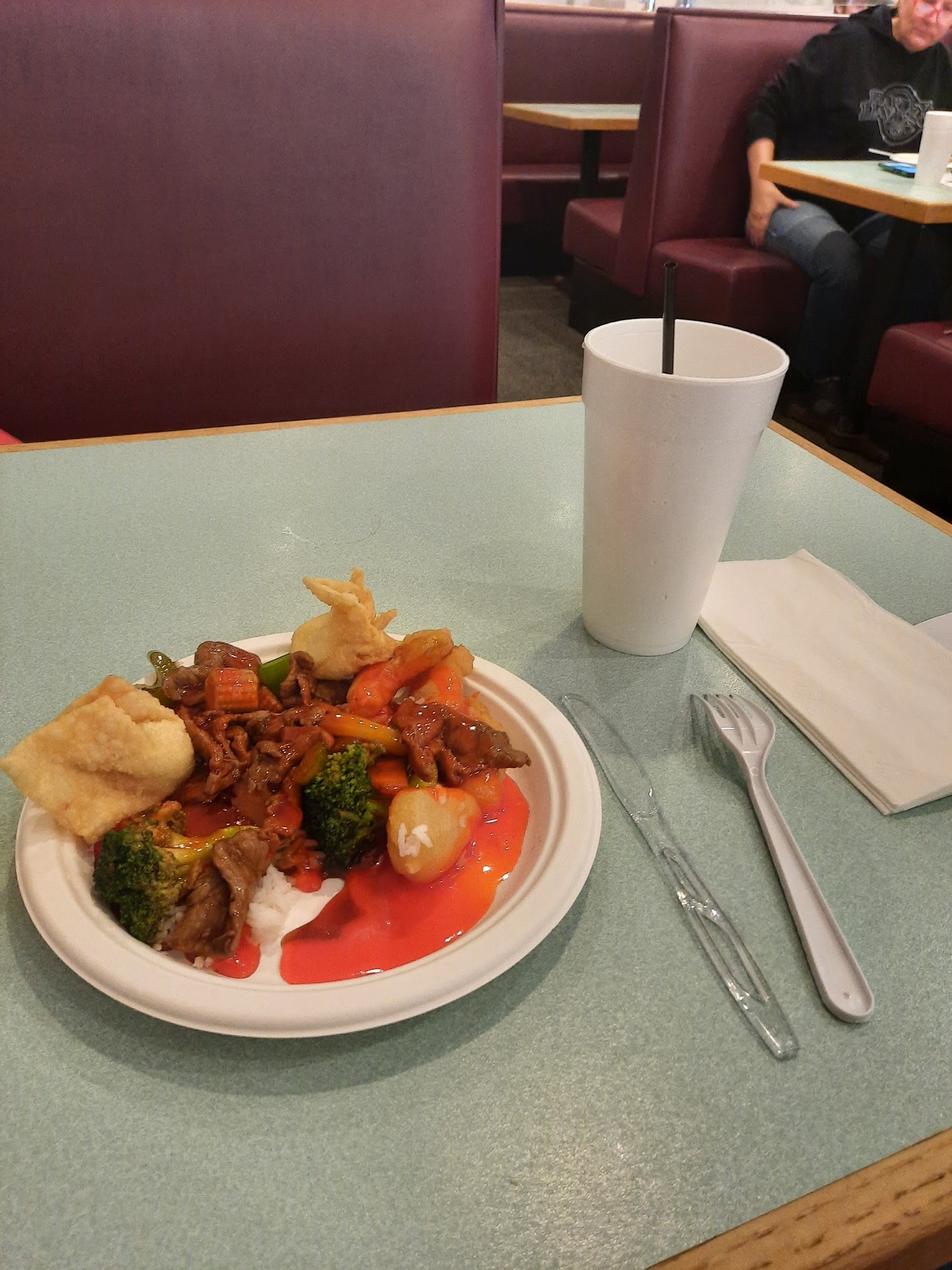Read moreWe are new to the area and we were driving through the other day, seen the sign and decided to stop. Although the staff seemed friendly and we did get refills on our water, everything else was not so nice. The place seemed kind of dirty and unkept. My husband took our child to the restroom and said they just had sos pads laying around on the bathroom floor, the toilet seat didn't have any bolts on to really stay on. We are by no means picky people and absolutely LOVE Chinese food, but pretty much everything they served had no flavor and was so bland, which was very surprising. Then to top it off, the person who refilled our water would pickup dirty dishes and the dirty table rag, then come over and pick up our glasses with dirty hands. The person actually left someone elses food on my husband's hand, off her hand, from dirty plates when grabbing his cup from him. So that kind of killed our appetite. We also thought we seen raw chicken or something like that just sitting out. If so, that would definitely be bacteria central. Unfortunately we all ended up with stomach aches and not feeling to great after...