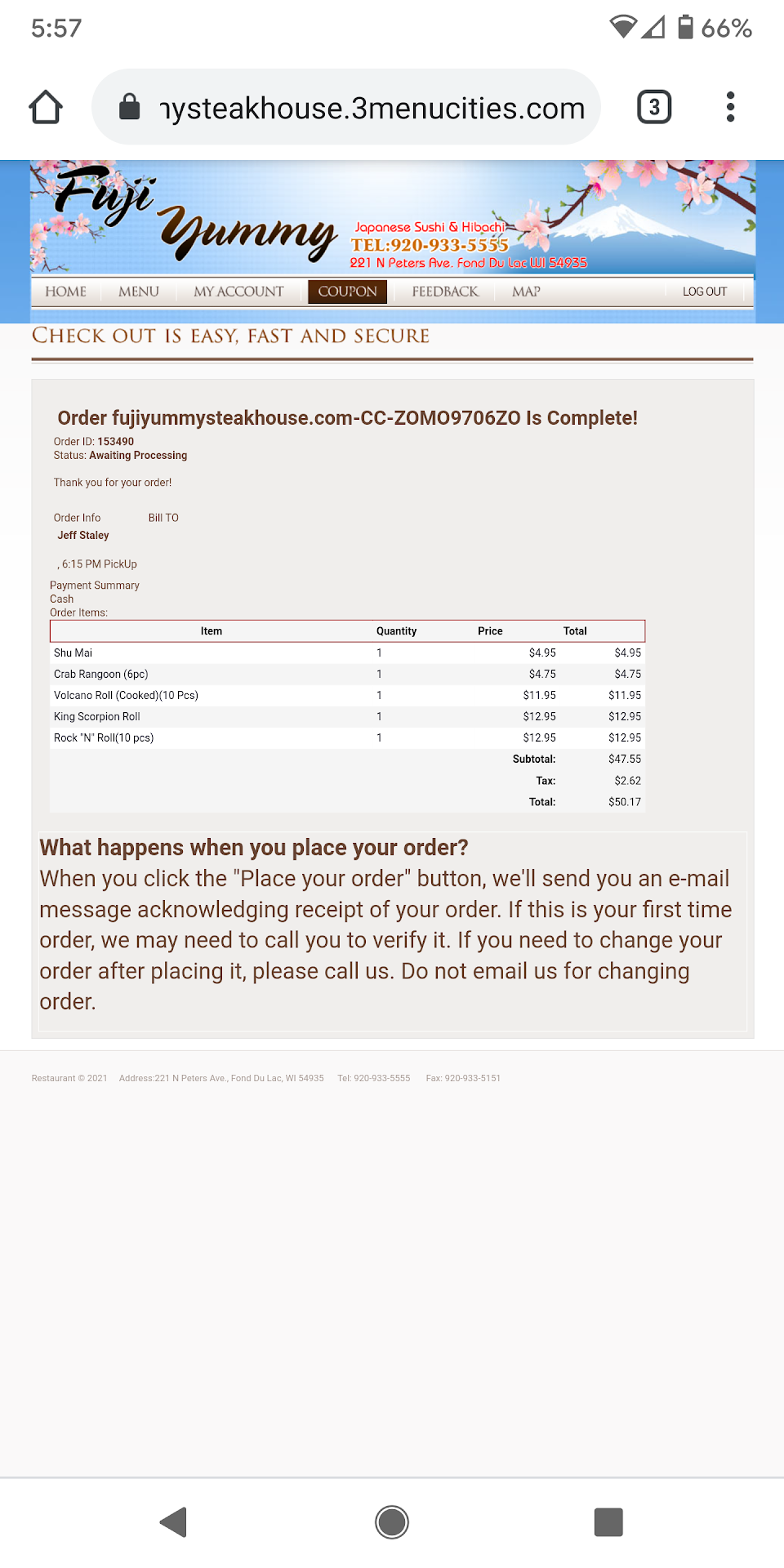 On top of this, my food was not great compared to last time. I ordered the hibachi filet steak, med rare, and scallops (same as my last review) and the steak was really overcooked (close to well done) and chewy but not hot. My vegetables were luke warm to cold…the rice was the hottest thing on my plate.