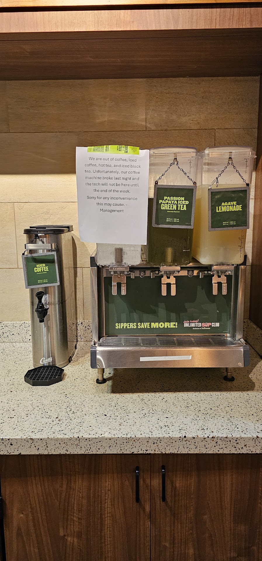Read moreDon't work here. The kitchen is absolutely disgusting and sticky. They sweep everything under the cold tables at night and clean mostly everything with warm water or the bathroom cleaner in a yellow bottle. One night i was sweeping the kitchen. Noticed some cherry tomatoes sticking out in view from underneath the cold tables in the kitchen area. Swept at it and low and behold the sandwhich wrappers, bacon bits, smashed noodle, tomatoes, onion, cilantro, etc. all starts shmoodling up. It was like a weeks worth of trash swept under. They'll have you use a mobile app to view your schedule but fail to mention at begining there was a physical paper. Fire you cau the mobile app and paper at work have completely different hours. Work with you to come back cause it was a misunderstanding. Then wasn't able to clock in because my number was deleted out of the system. Write down your clock in and clock out times for management to see and adjust in the morning. They'll just lose the paper and say you never shoed. I worked three 5 hours shifts for free apparently. You're...