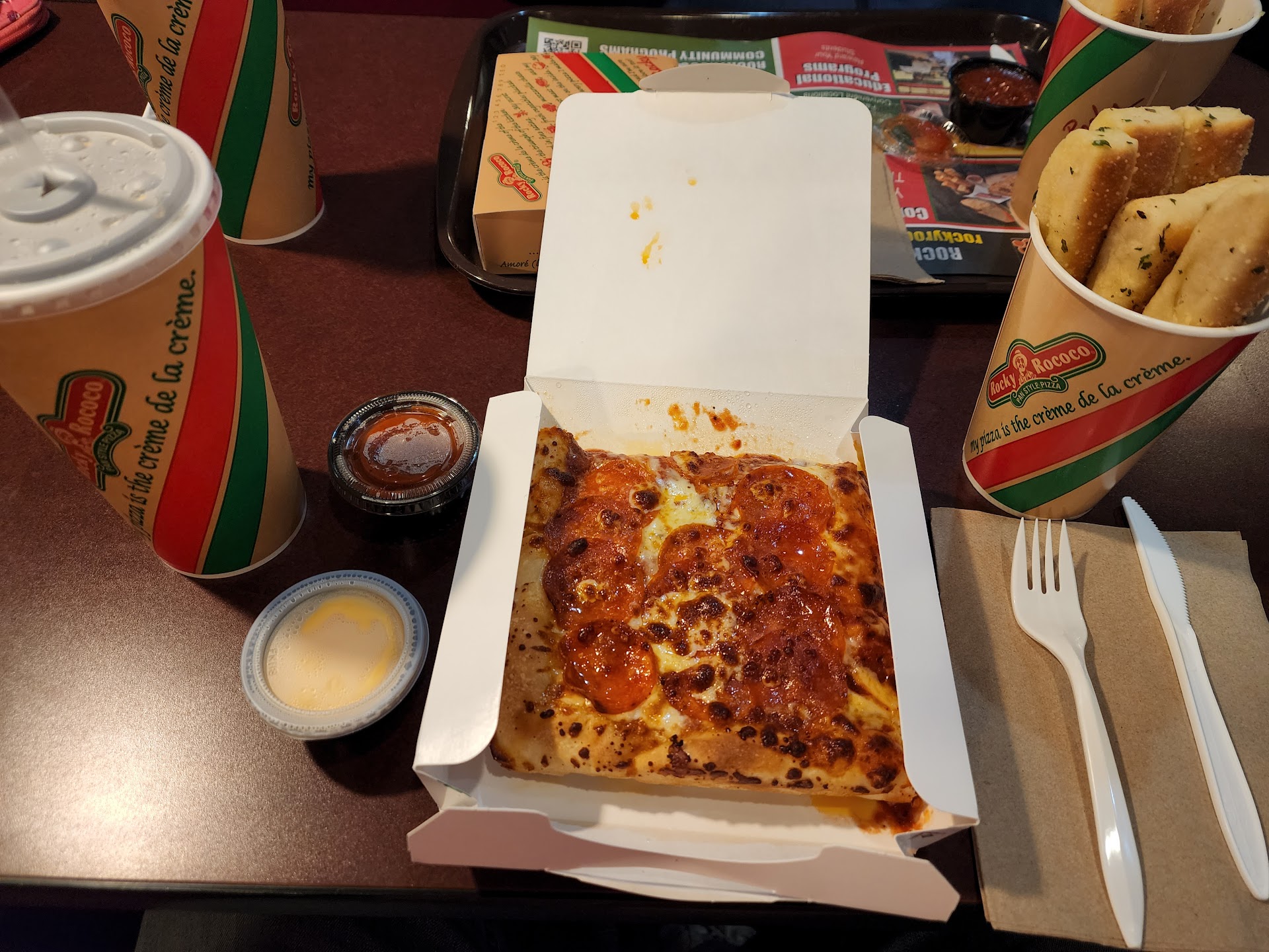 Read moreWe moved out of state 2.5 years ago. Where we moved, there was no Rockys which is my favorite pizza. We moved back a month ago. Today, we finally got a chance to stop and grab some for the whole family, an over $50 dollar order. While trying to place the order, the blonde girl working the drive thru was extremely rude, asking "is that all?" after each item. We informed her each time that there was more, but she continued to interrupt, even rudely and obnoxiously cutting me off and repeating half of the order and telling me to pull around when we weren't finished ordering. Finally get the order made, and with blatant attitude and eye rolling, takes my card rudely, hands it back rudely, and continues talking to whoever was in the back. Literally acting like we are bothering her, hands our food and drinks to us, still with attitude and angry glaring. She must not understand that customers pay her paycheck. No please, no thank you. Just flat out attitude. The pizza was mediocre and the breadsticks were cold with one of the side orders of them being hard and stale. If I wasn't a rockys fan, I'd have given a 1 star review. Bad attitude having eggs like this girl are the reason for businesses failing and no repeat customers. It's sad, because we used to order 2 whole family sized pizzas a week to take home on Fridays and unless something is done about the staffs attitude, we will not...
