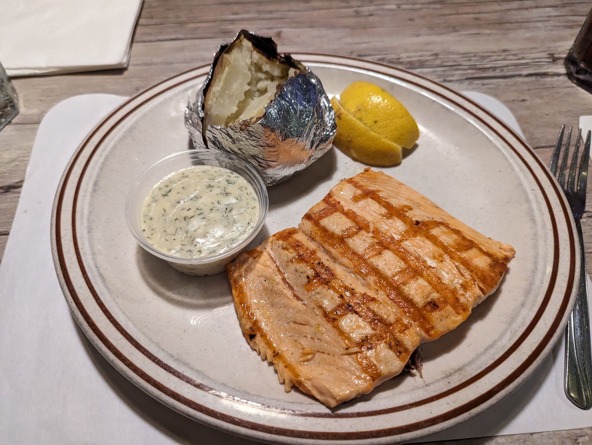 Read moreUsually they are spot on but tonight I do have to drop the 5th star to a 4 star rating. Service was great. Our waitress was prompt, very friendly and everything else you'd want her to be. My issue was with the meal. My wife's steak was perfect... ordered it medium, and it arrived medium. Her snow peas though, they were over done... they were pretty mushy and had zero "snap". My steak was also ordered to medium, but it was much closer to medium rare to rare in the center. A 14oz. Ribeye and I probably had to trim close to 5oz. of rare meat off. Also, the steamed broccoli had an after taste of fish. I love fish and I love seafood but, not fish tasting broccoli. I get that it's a seafood restaurant but that's no excuse. Because it was towards the end of their night (9pm they close, we came in at 8:05) and this literally was the only time we've ever had a somewhat negative experience, I'm not going to be too harsh with the overall rating. This is more of a heads up to the kitchen. Please see it thru to the end of your shift. I expect the same quality of food at 6pm as 8pm. I get that you're trying to get as much cleanup done as possible at the end of the night, but trying to rush the cooking process doesn't work for us customers who have just worked a 12hr shift and have spent the last 4 hours of that shift looking forward to one of your usual perfect meals. To be clear, the other 30+ visits we've had have been stellar. And we do look forward...
