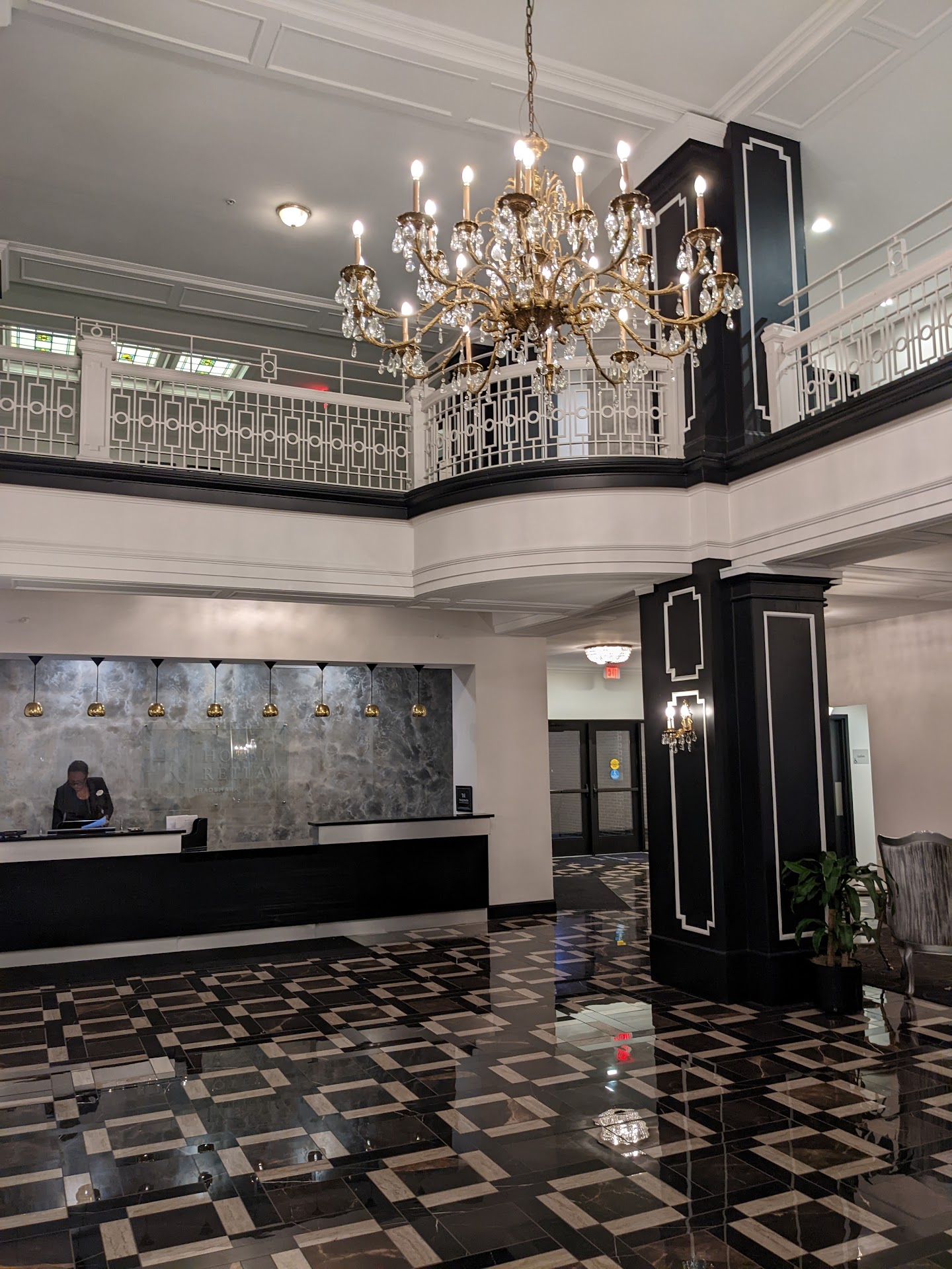 The bartender was chatting with a couple when I arrived - when I asked for a wine list he dropped off the "by the glass" list without looking at me. When he came back after 5 minutes I asked for the bottle list. He didn't say a word - just went to get it, tossed it at me and went to the other side of the bar. I had a similar experience when asking for a food menu: it was like my presence was an interruption of his conversations with the other diners. I ordered a bottle of Sauvignon Blanc, which he brought over in a chiller (bonus points) but plopped down with a glass and then walked away (back to normal). I actually like serving myself, but it's a little unusual to not have the bartender at least OFFER to open the bottle (it was a screw top, thank goodness!). Although he didn't ask how I liked it, it was surprisingly good in case YOU'RE curious, and a good deal for $30. Speaking of curious, I now know much more about this bartender than I really needed to, like the fact that he likes spicy food and is a BIG fan of Carolina Reaper peppers. He mentioned that to a couple different people. He finally engaged in conversation with me when I asked about the menu, but his comments were strangely specific to whether I wanted to feel light or food-coma-ish after my meal, as if that were the only important thing to consider. On to the meal: the crabcakes were passable. Way too much tartar sauce underneath (I think they called it aioli - but it was tartar sauce). The cakes were fishy, but I'm pretty picky since I'm a Maine seafood dealer, so I others might like them. They are gluten free, which was a bonus. The bartender recommended the salmon (I know, I know, WHY would I listen to his recommendation??). I got the salmon over polenta, and the maple sauce on the salmon was very tasty but the salmon itself was extremely overcooked. Totally dried out. The polenta was abundant but relatively low in flavor - it could have been good with just a bit more seasoning. The glazed carrots were very good. I did have one normal interaction when a waitress who happened to be behind the bar asked me if everything tasted good. I told her it was fine. The atmosphere was nice and the chairs were comfortable. Also, the $30 bottle of Californian SB was a nice deal. All in all, I'd say go somewhere else. I really WANTED to like the place as I do like the hotel, but my goodness that bartender should NOT be in the...