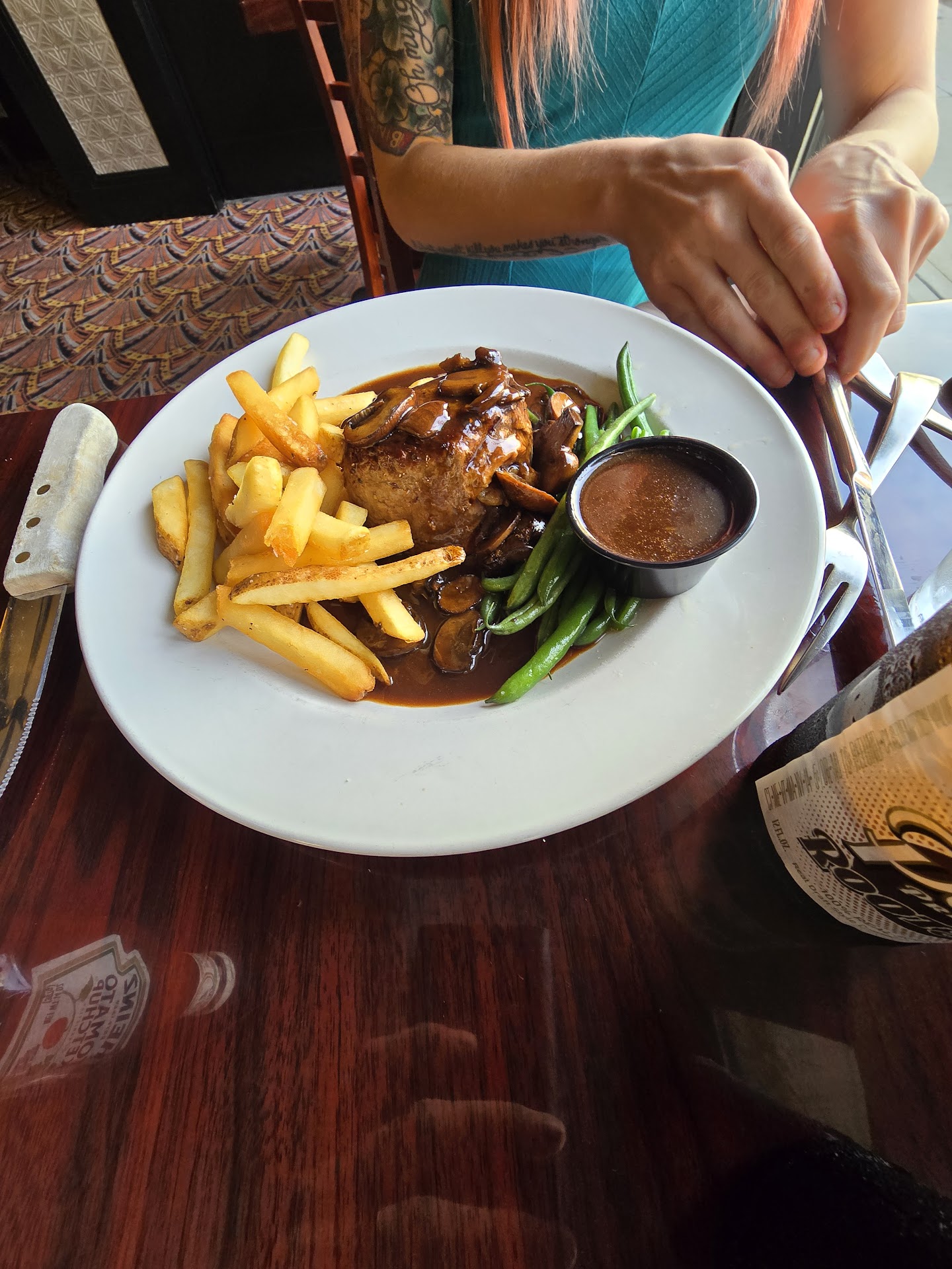 First time visiting. Wife and I both got root beer which was decent. Nothing phenomenal. The house bread is warm with a hard crisp crust. Amazing. House salad was fresh and crunchy. Wish it had some cheese though. Dressing tasted cheap store bought. She got the stuffed tenderloin with the demiglaze. It was a 10 for her. I got the new yorj strip. It was a bit more fatty than expected. But the flavor was good. Got a side of demi glaze. Was definitely the move to dip steak in. Their Tarter sauce is also bomb as well. As for the establishment and staff. Staff are super friendly and willing to suggest a meal. The establishment is clean and tidy with nice ceilings. Had a good view of downtown.