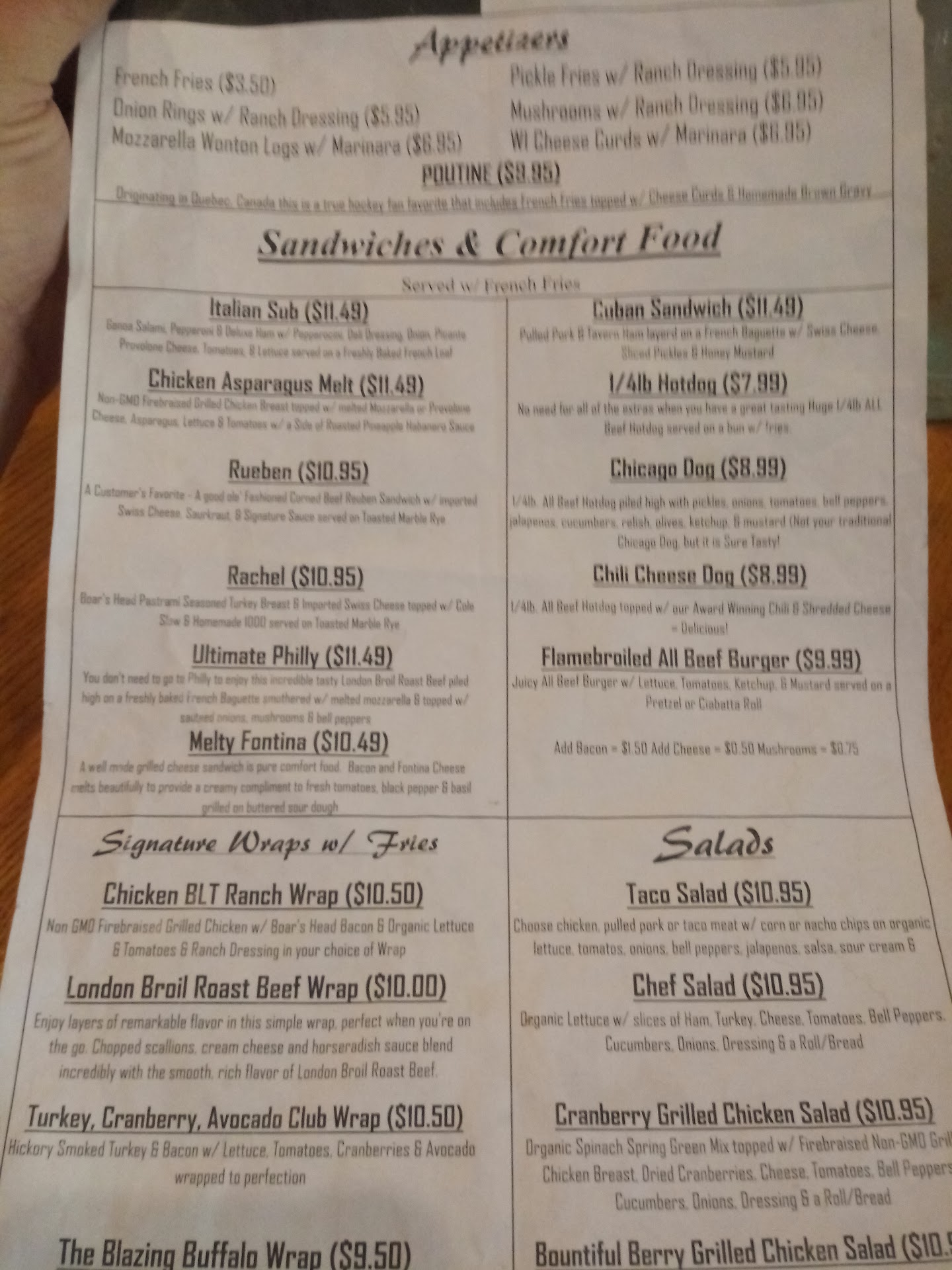 Read moreWe stopped in to have dinner before going shopping. Well to start we waited 20 minutes before someone came to wait on us. We started off with drinks it took 20 minutes to make 2 drinks. We wanted fish since it was Friday. The fish wasn't on the menu that was handed to us. I ordered the perch dinner. The waitstaff/bartender still had not finished making the 2 drinks. Finally we received our food I had to call the waitstaff/bartender over to the table to ask for my salad. The perch I believe came from a box, it didn't taste like perch at all it had too much breading like fish sticks. I wasn't satisfied with it, but the salad was good. While eating we were asked it we needed anything else my husband ordered another drink. I noticed 4 ladies standing at the bar. I said we are going to see how long it's going to take to get that drink. The ladies that were at the bar all left and went across the street to another place. 20 minutes had gone by and still no drink. So we said never mind we just wanted the check. I won't order fish there again... well we will not be back too long waiting for service. Nice place just...
