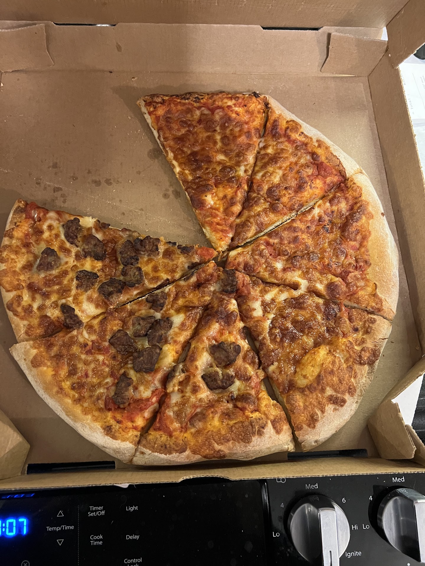 I ordered through Slice. Had order issues with the app. Used slice many times with a different pizza place and never had issues. Slice csa had to intervene and the order had to be put in manually. The Slice csa told toppers to NOT charge us when they manually entered the order. However when my husband showed up to pickup the order, he was told he needed to pay. The worker tried to get him to tip by mentioning it as he's paying and when he bypassed the tip, the worker was not very nice from there on out. The thing is, he planned to check the pizza to make sure it had been made correctly first and then tip. However, the moment he was given attitude and had the box dropped in front of him, instead of handing it to him, he was done. The pizza was... eh. It was soggy. I asked for light on 2 toppings. One topping was not light. If the pizza would have been done just a little more it would have been great. It just seemed like it was pulled out early. The hand tossed garlic crust was great. I won't order again as the behavior of the worker was not called for. After the trouble we went thru before we got their, you would think that they would go above and beyond to do a great job and make our experience great. That...