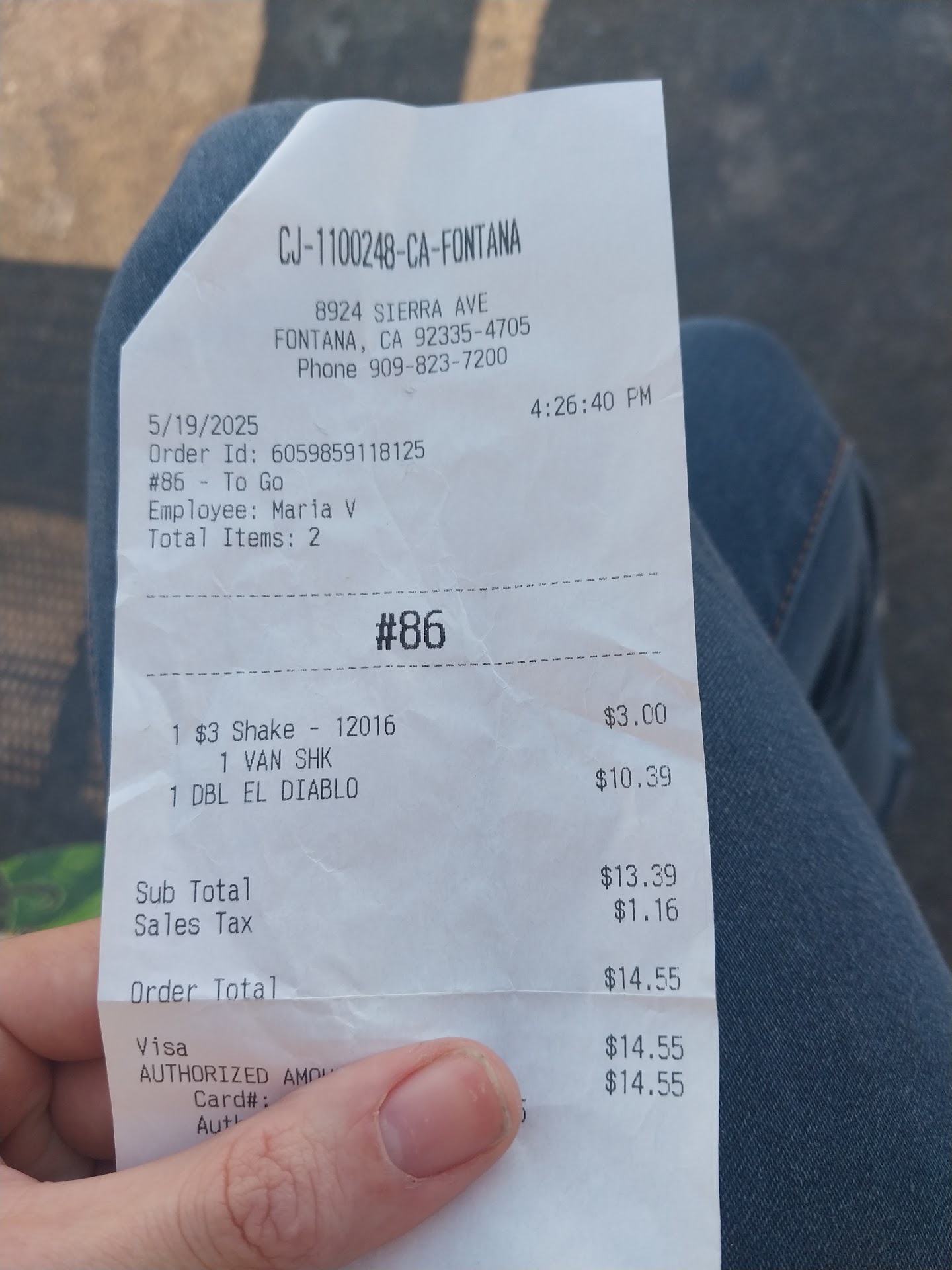 Eventually, a young man brought our food to the car. Again, no acknowledgement, just thrust the bag through the window and walked away before we even had a chance to say "Thank you." And of course...two items were missing.