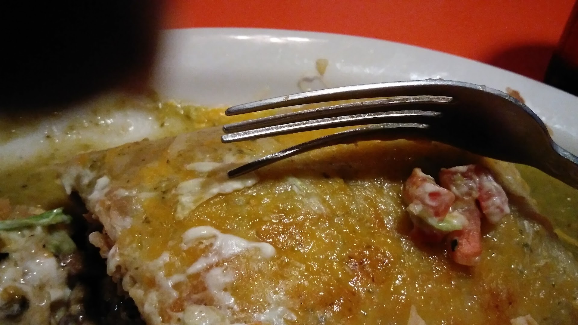 I'll start off by saying that the food is amazing and i would recommend it to anyone looking for a delicious meal and generous portions! My wife and I entered and stood awkwardly at the door not really sure what to do. A waitress asked if it was our first time and we nodded and she kindly asked us to sit anywhere we liked. We took a seat and we're quickly treated to warm crispy tortilla chips and an excellent salsa that was a little sweet from the tomatoes and just the right amount of spicy. The waitress took our drink request and brought them out almost immediately. We looked through our menus, decided what we wanted and then we waited... And waited... And waited... For what seemed like forever. It was probably about 15 min before a waitress finally noticed us and came to take our order of 2 wet burritos. She came back out of the kitchen in maybe 7 minutes with our order. Making up for lost time! These burritos were excellent! My wife tried the green sauce with shredded beef and i had the red sauce with grilled chicken. Served with a little guac and some sour cream on the side. Huge portions big enough to share but we were up for a challenge. Half way through the burritos we had run out of chips and waitresses would walk past us, never stopping to ask us anything or offer refills. I had noticed the chips and salsa near the entrance when we arrived but was unsure if i could serve myself. So i managed to get a hold of a waitress and asked if I could serve myself without getting in trouble, she smiled and said "yes, of course!ā great! Endless chips and salsa! Topped off the bowl and back to the delicious burrito! We finally finished eating and waited again for our check to pay up n be on our way. Waitress came by and took our plates, no check. All the waitresses disappeared for a solid 15 min at this point. We had finished our meal and were just sitting there waiting to pay. Finally managed to ask someone for bill, got up, paid at the front counter and left. Now, I know i could have stopped someone, or gone up to someone and ask for help at anytime but I that i dont like when my customers do that to me at my job so i dont like doing it to others. However, good service is extremely important and I feel like the service could have been far greater than it was. For being such a small restaurant with maybe 15 tables and 3 waitresses at the time, the amount of time we had to wait for simple service was...
